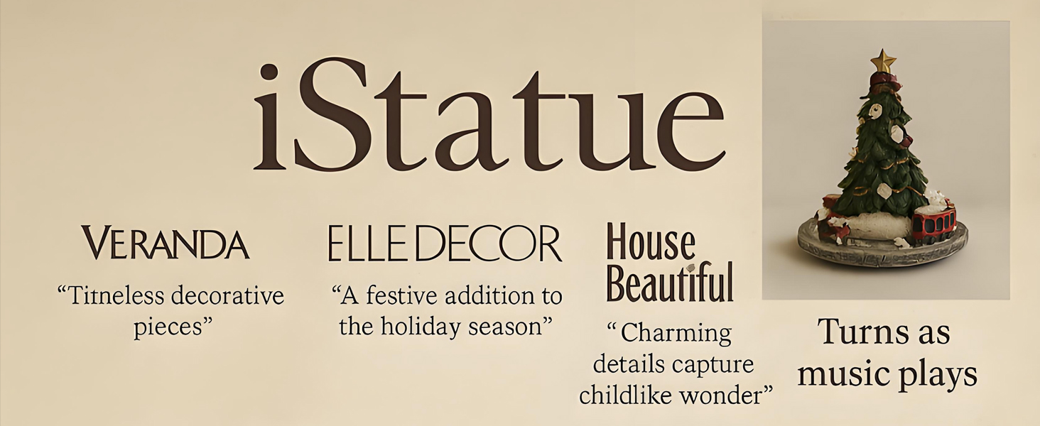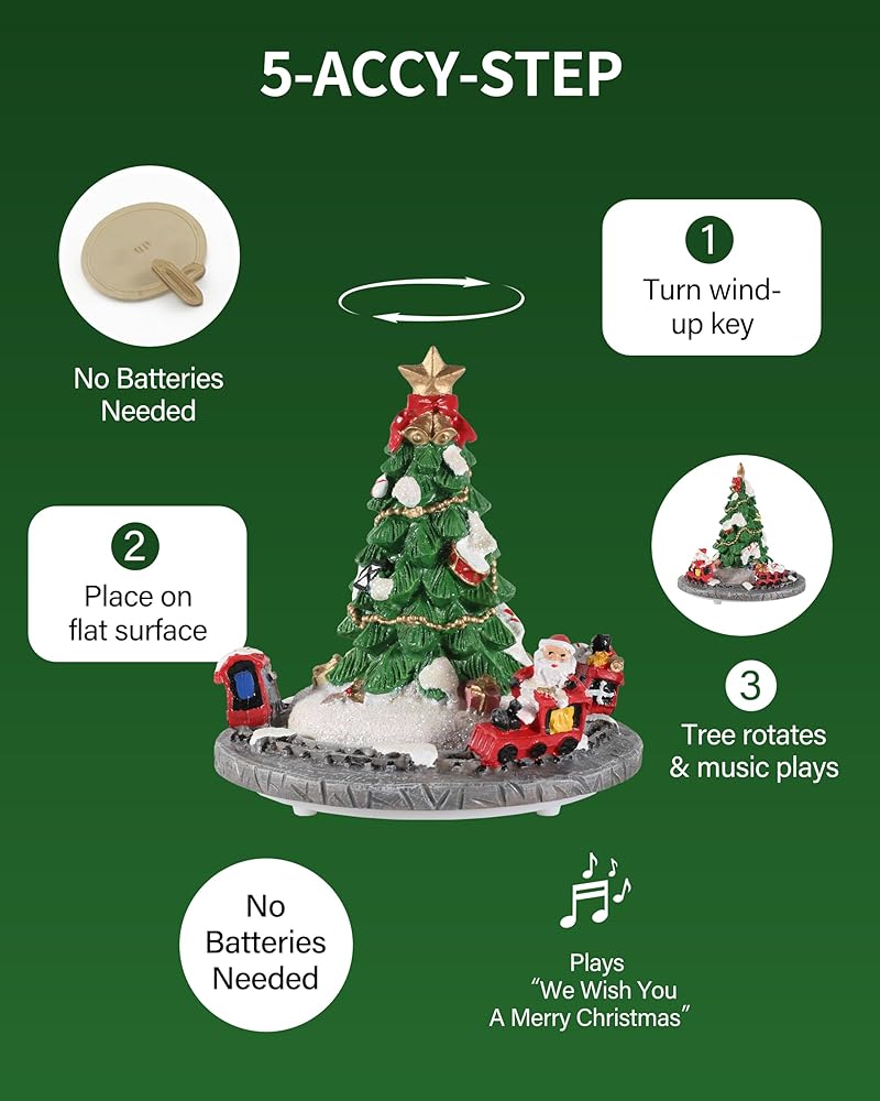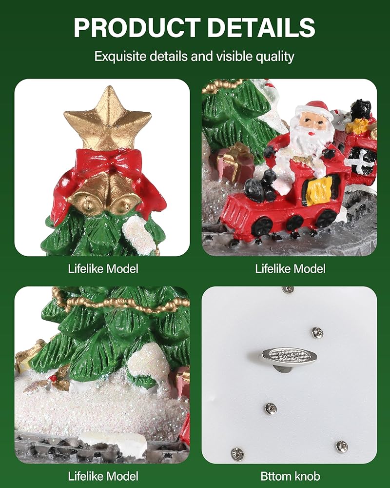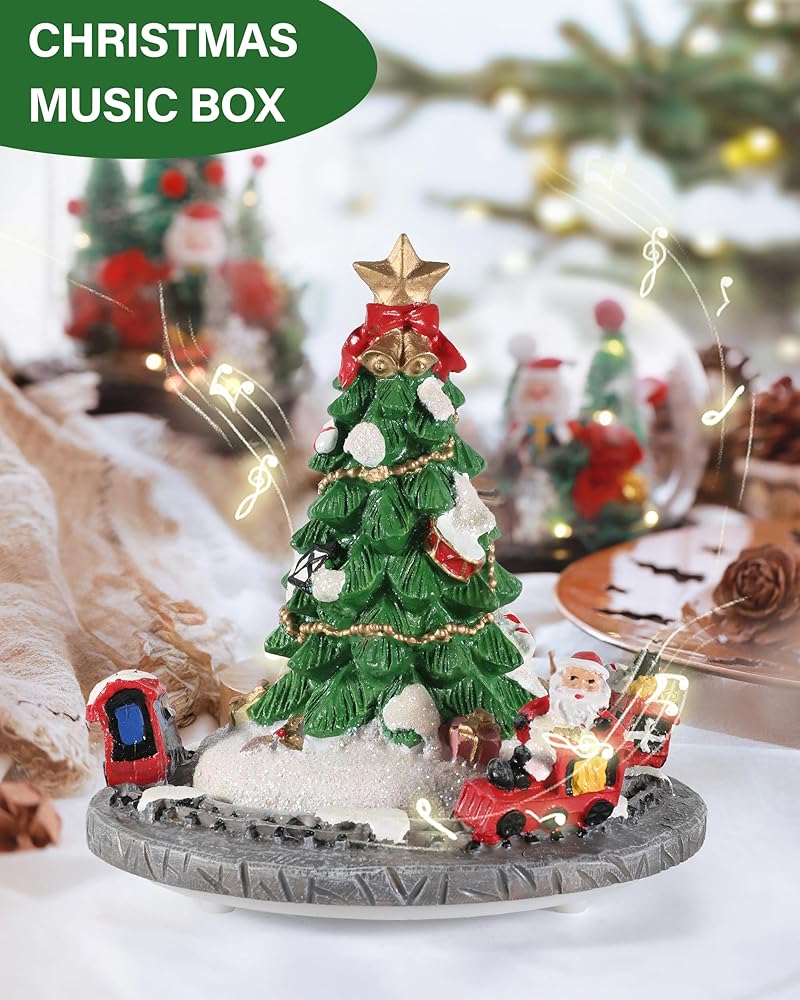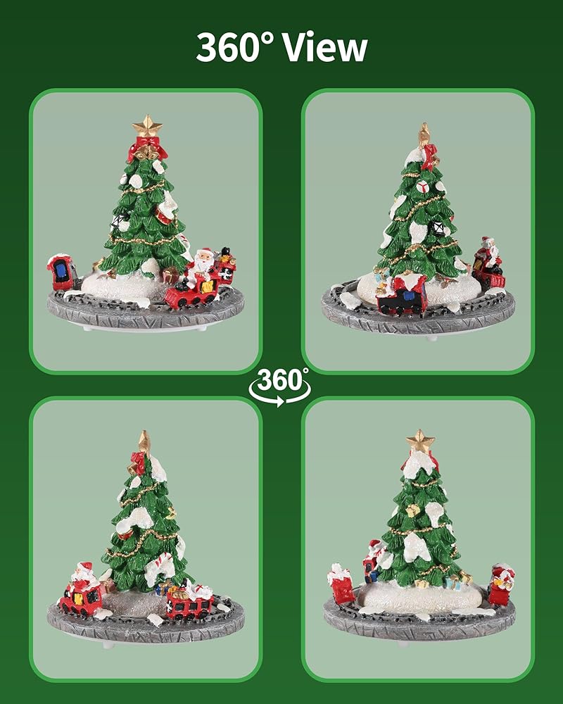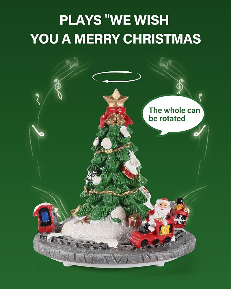 تمثال شجرة عيد الميلاد الموسيقية الدوارة من iStatue - زينة عطلة من الراتنج مع قطار سانتا، تعزف أغنية "عيد ميلاد سعيد"، هدية عيد الميلاد الدوارة بطول 15.24 سم (شجرة عيد الميلاد)