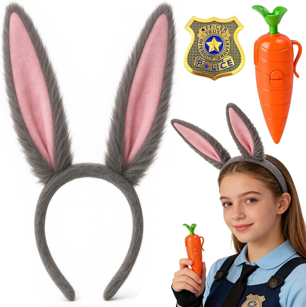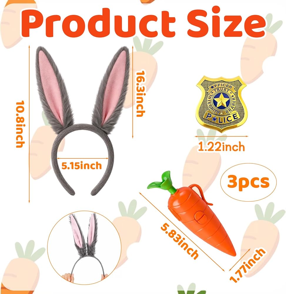 1 rabbit ears headband, 1 badge, and 1 carrot pen
