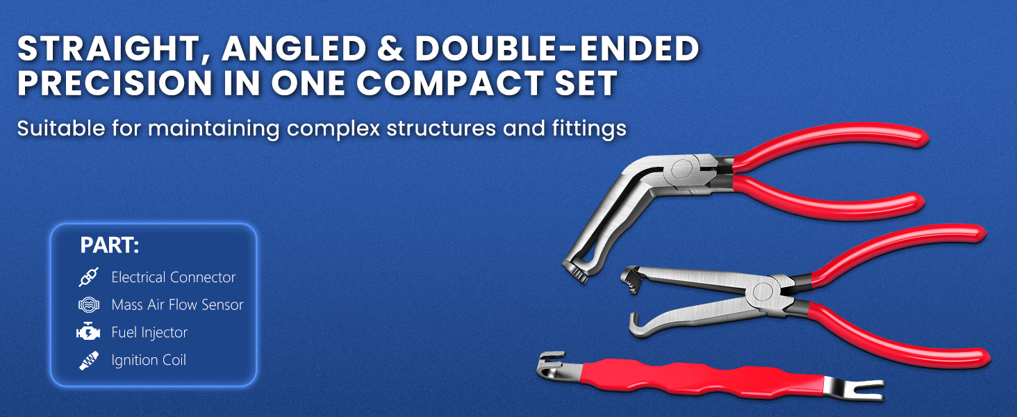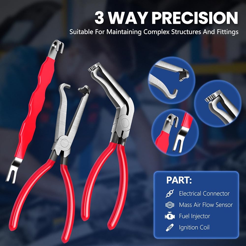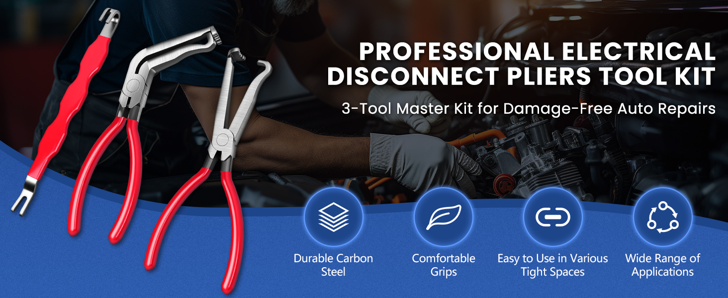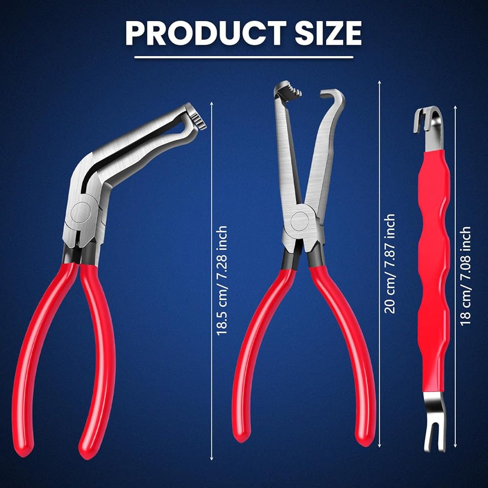 كماشة فصل الموصل الكهربائي: مصممة لإزالة الموصلات العنيدة دون عناء، تشتمل مجموعة كماشة الفصل الكهربائي هذه على ثلاث أدوات دقيقة لأحزمة أسلاك السيارات، ومشابك الضغط، والمكونات الإلكترونية، ولا يوجد خطر بإتلاف سيارتك.