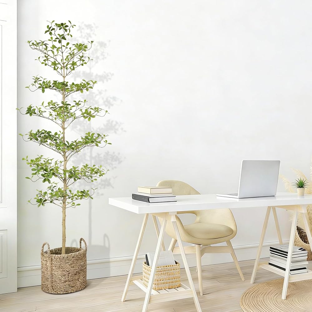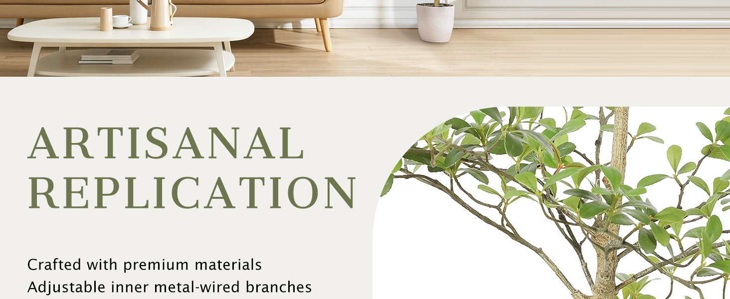هيكل قوي وقاعدة مرجحة: صندوق معدني داخلي معزز وفروع سلكية فولاذية مرنة تحافظ على الشكل بفعالية. يوفر الوعاء المرجح المملوء بالأسمنت (قطر 5.9 بوصة) مقاومة معززة للطرف لمزيد من الثبات. نوصي بوضع هذه الشجرة في وعاء زخرفي لتعزيز التأثير الزخرفي العام.