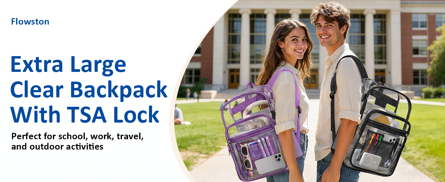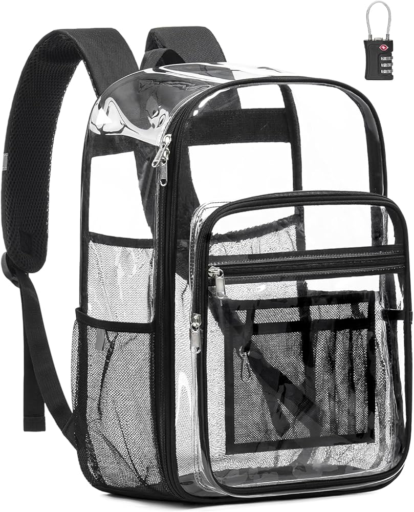 قفل TSA متضمن لراحة البال: تأتي حقيبة الظهر الشفافة مع قفل مخصص معتمد من TSA لضمان تجربة نقطة تفتيش أمنية سلسة وخالية من القلق. ويقوم القفل بتثبيت سحابات المقصورة الرئيسية بشكل آمن، مما يمنع النشالين والوصول غير المصرح به. حافظ على مقتنياتك الثمينة آمنة وخاصة سواء كنت مسافرًا أو تتنقل أو في الأماكن المزدحمة.