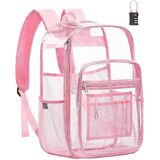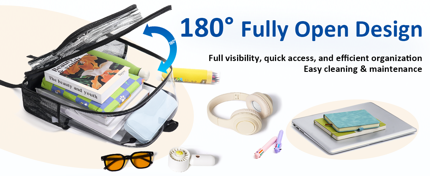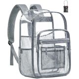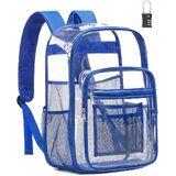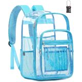 حقيبة ظهر شفافة متعددة الوظائف: تسمح حقيبة الظهر الشفافة الكبيرة جدًا بالفحص السريع وسهولة الوصول بفضل تصميم الحقيبة الشفافة، مثالية للكلية والسفر والعمل والمهرجانات والتخييم وأحداث الاستاد. عصرية وعملية وجاهزة لأي شيء!