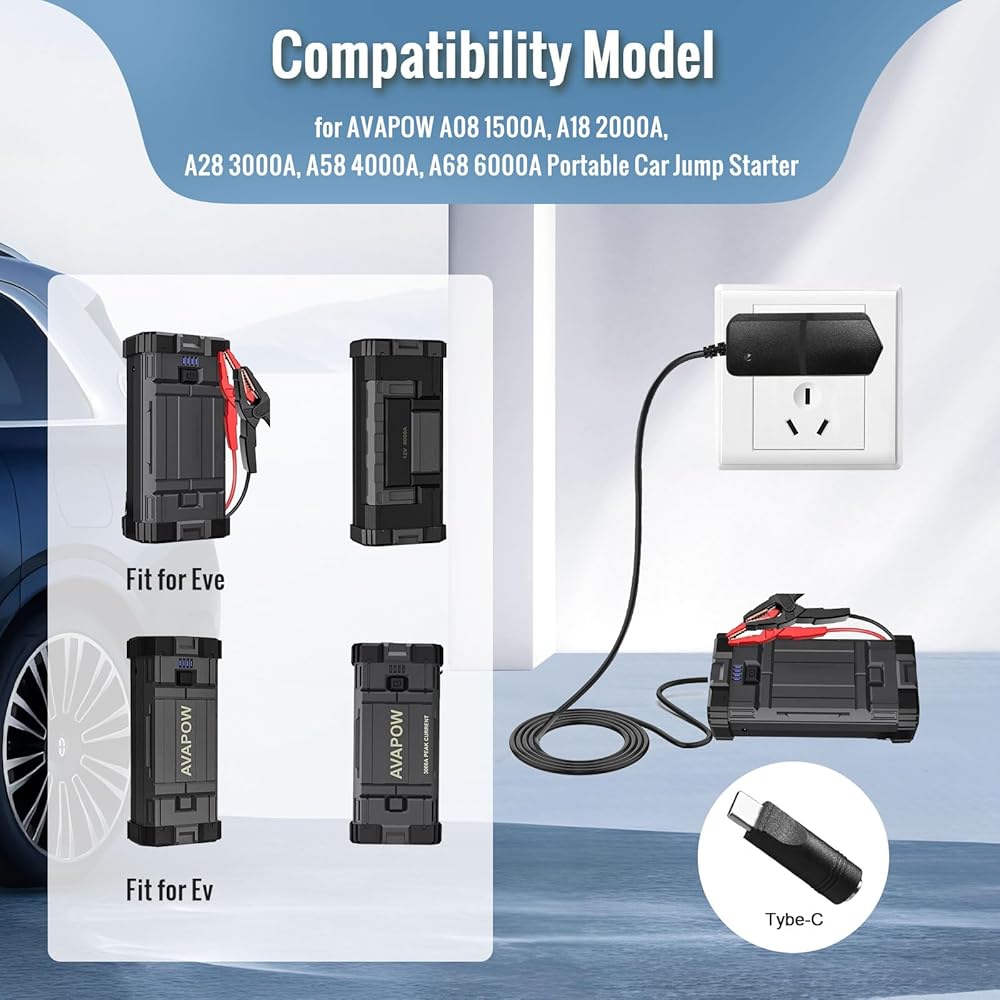 • Compatibility: Fit for AVAPOW A58 A68 A28 A08 A18 4000A 6000A 2000A 3000A Car Jump Starter Power Supply.
