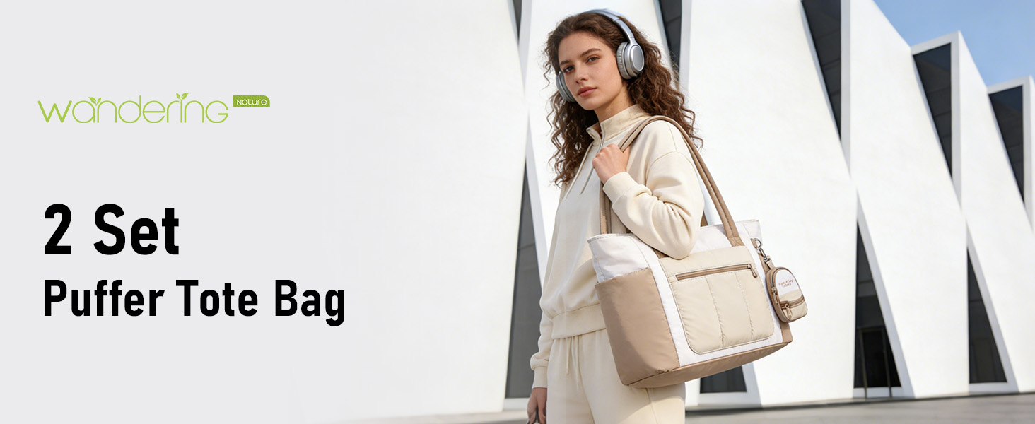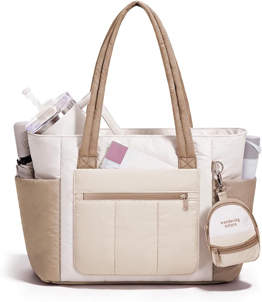 حقيبة حمل منتفخة منتفخة من Wandering Nature للعمل والممرضة، حقيبة حمل مكونة من قطعتين مع حقيبة صغيرة، تناسب كمبيوتر محمول مقاس 15.6 بوصة، وحاملي أكواب داخليين مزدوجين