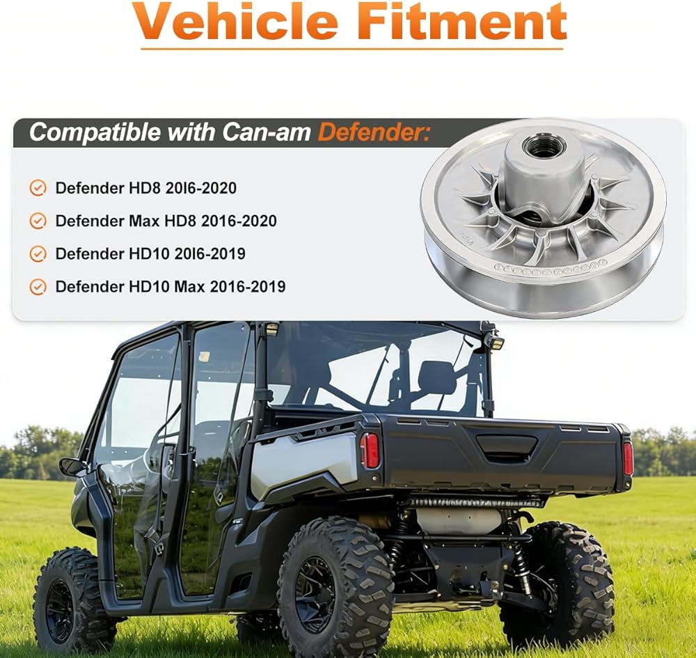 Fitment: Secondary Clutch compatible with Can-Am Defender HD8 2016-2020, HD10 2016-2019, Defender Max HD8 and Max HD10 2017-2020 for precise fitment.