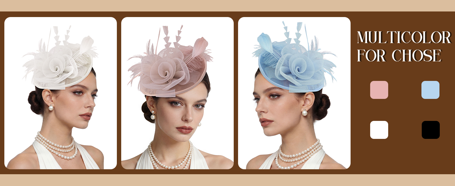 ألوان متعددة: لدينا تسعة ألوان لتختار منها، سوف تحب الجمال المذهل الذي تجلبه هذه القبعات لحفلة الشاي أو الزفاف أو احتفالات يوم السباق.