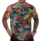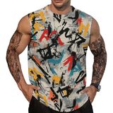 قميص رجالي صيفي بدون أكمام للتمرين برسوم الجرافيك في صالة الألعاب الرياضية in Kuwait