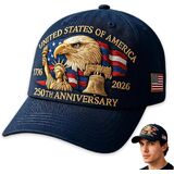 This commemorative cap, crafted to mark the 250th anniversary of the United States (1776-2026), is made from premium fabrics offering both substantial quality and comfortable wear.