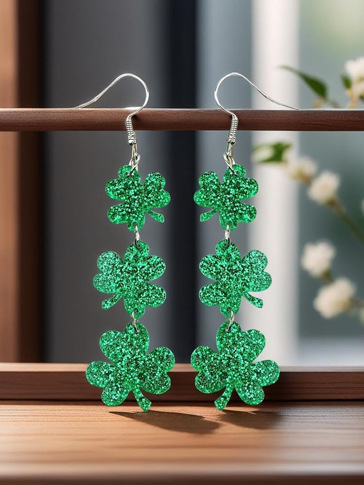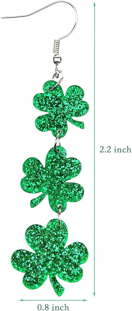 Premium Material:Made of high quality Acrylic and Zinc Alloy.The earrings have the characteristics of being lightweight,and easy to wear.Bright glitter bling colors and a shiny paint surface,make you stand out on St. Patrick's Day.