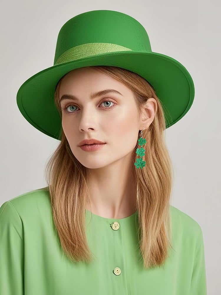 St. Patrick's Day Green Shamrocks Clover Earrings for Women,Good Luck Dangling Earrings,Irish St. Patrick's Day Decorations Accessories.