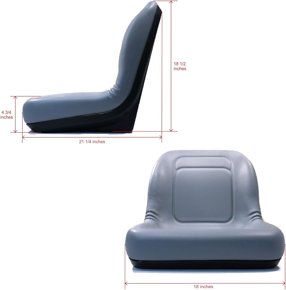 Features - Heavy-duty vinyl covering. Vacuum formed waterproof vinyl. Ergonomic cushions to ensure operator comfort. Durable blow molded plastic frame is corrosion resistant. Central drain hole prevents water build-up. 19" high-back seat which will replace both original 16" and 19" high-back seats. Multiple mounting patterns