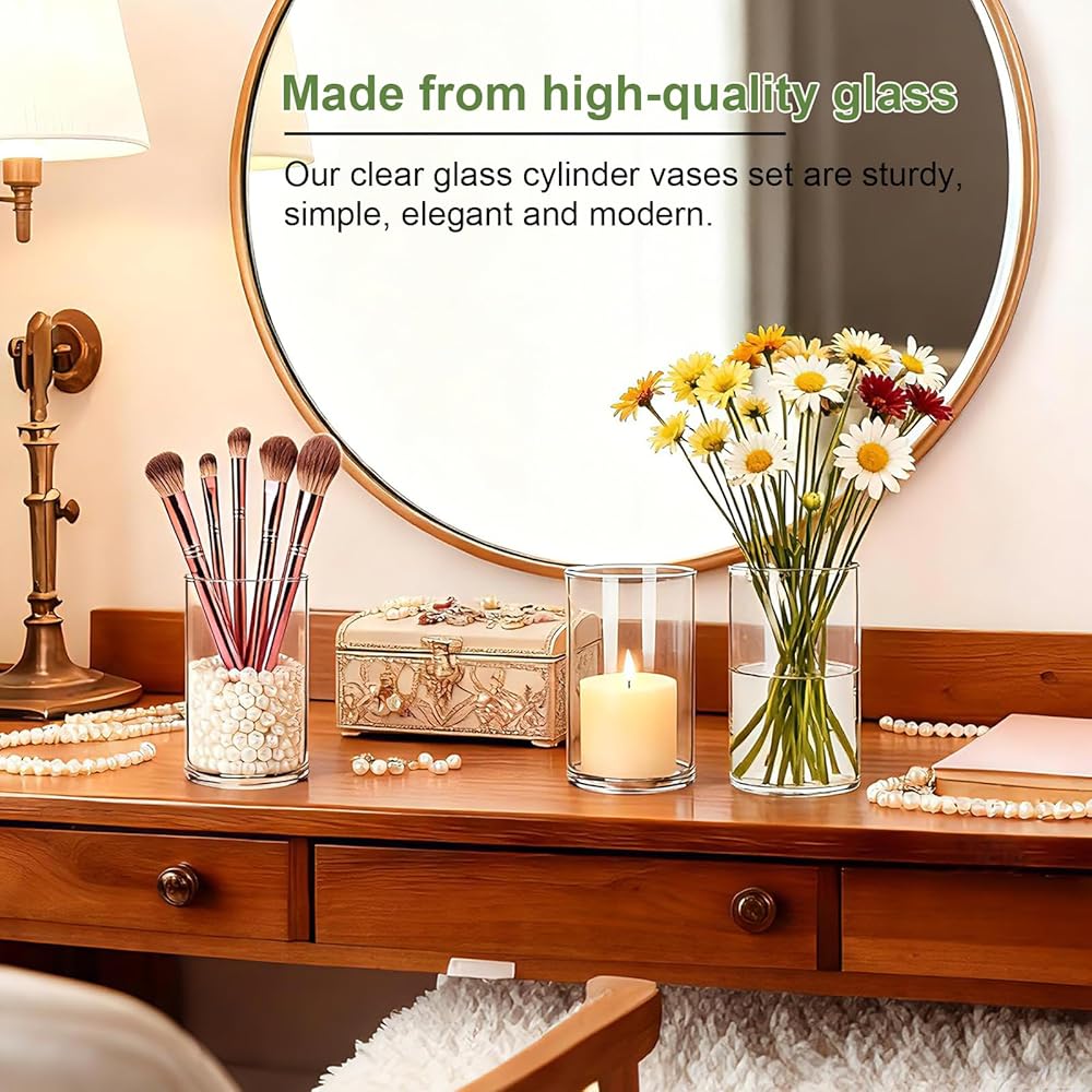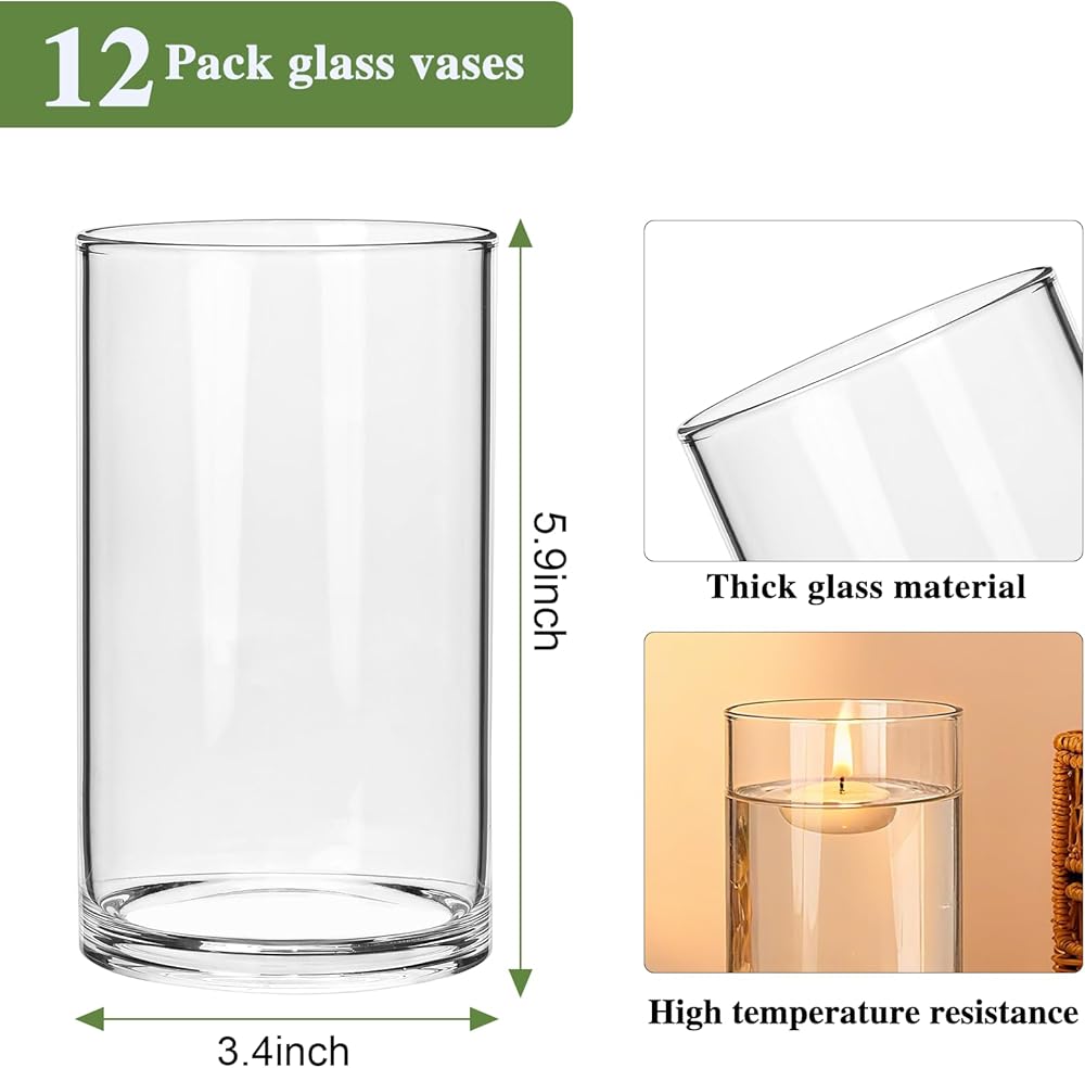 زجاج متين وقوي - هذه المزهريات الأسطوانية للقطع المركزية مصنوعة من زجاج سميك وقاعدة مرجحة لتحقيق الثبات، هذه المزهريات طويلة الأمد وآمنة للاستخدام اليومي. ومستقرة على الطاولة. يبلغ قطر كل مزهرية زجاجية 3.4 سم × ارتفاع 5.9 سم. مما يوفر مساحة واسعة لترتيبات الأزهار المتنوعة.