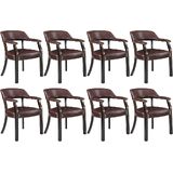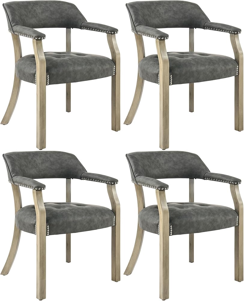 تصميم أنيق ومتانة: بفضل تصميمه الأنيق وبنيته القوية، فإن كرسي الطعام هذا ذو الأذرع يلفت الأنظار حقًا. يتميز بإطار من خشب الحور الصلب، وأرجل من الخشب المطاطي، ومقعد منجد معنقدة بأزرار، ودعم ممتاز للظهر. سطح الجلد الصناعي متين بشكل لا يصدق، ومقاوم للتآكل، ويتميز بخصائص مقاومة للماء ومضادة للبقع الزيتية. يمكنه التعامل مع حمولة قصوى تصل إلى 280 رطلاً.