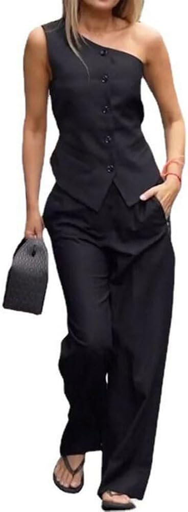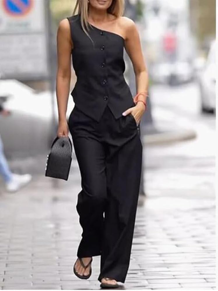 2 قطعة ملابس نسائية كتف واحد سترة بلا أكمام سترة مع السراويل بدلة رسمية البدلات الرسمية للنساء