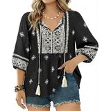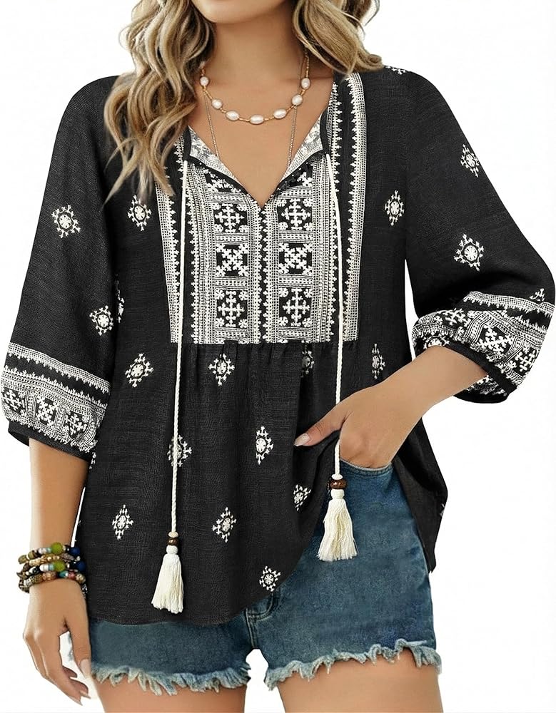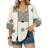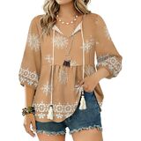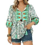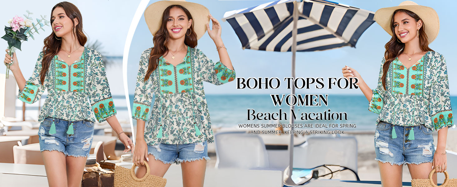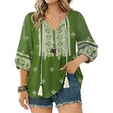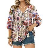 بلوزات نسائية بأكمام 3/4 هي مزيج مثالي من المطبوعات الحالمة والألوان المرقطة التي تجعلك مميزًا على الشاطئ، والبلايا، وأعياد الميلاد، والحفلات، والسفر، ولم الشمل، والعطلات، والنوادي، والعطلات، والتسوق، مما يوفر سحرًا وأزياء سهلة في جميع المناسبات.