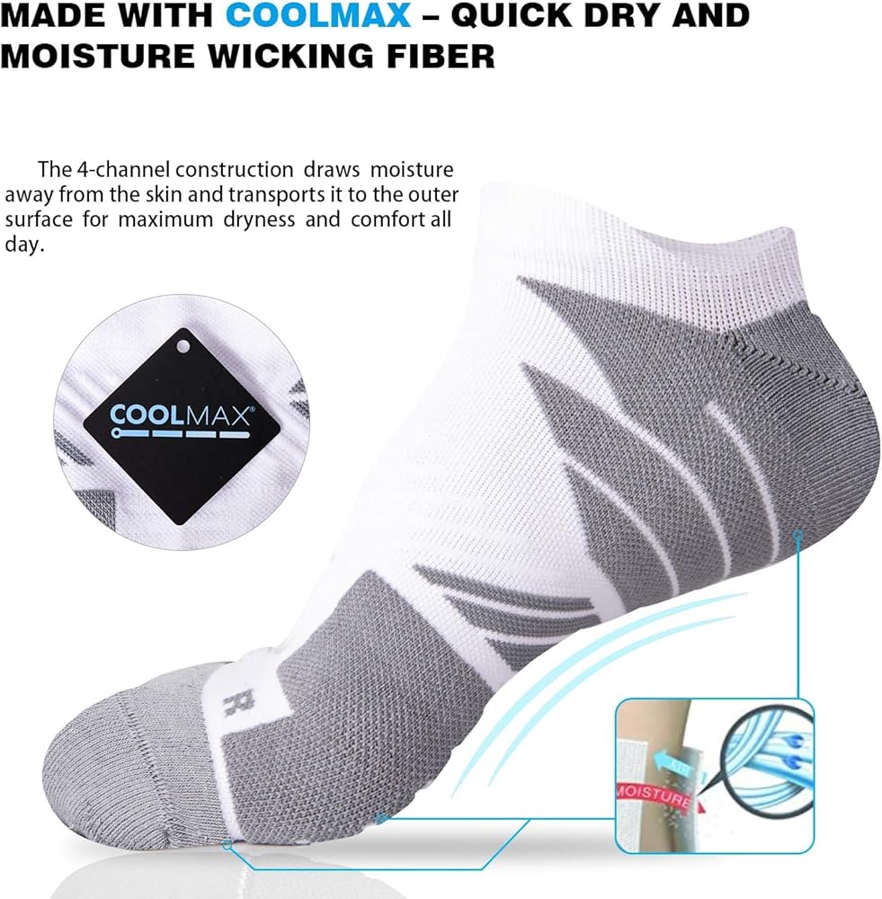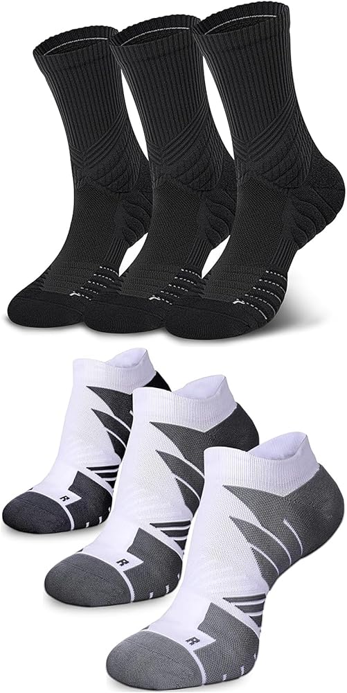 6 أزواج من جوارب الجري للرجال من Hylaea، جوارب Coolmax مبطنة مضادة للبثور للرياضيين، ماصة للرطوبة وبخياطة مقاس L أسود وأبيض