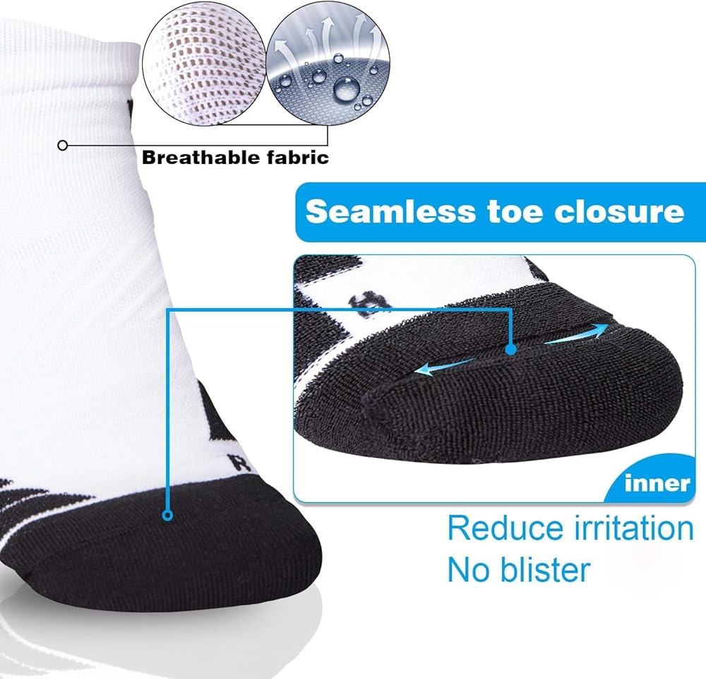 • مضادة للبثور ومريحة - مع حلقات سميكة مبطنة على أصابع القدم والنعال والكعب، تقلل جوارب الجري الضاغطة لدينا من الاحتكاك، مما يجعلها مثالية للشباب والنساء والرجال.