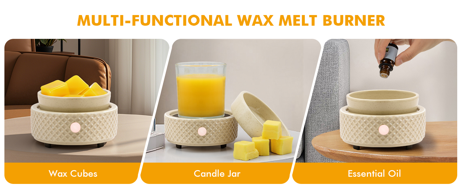 سخان شمع سيراميك 4 في 1 متعدد الاستخدامات: مصنوع من السيراميك الفاخر بلون بيج مهدئ مع نسيج شبكي أنيق، موقد ذوبان الشمع هذا هو قطعة مركزية متعددة الوظائف. يناسب الطبق القابل للإزالة مقاس 8.89 سم بشكل مريح 4-5 مكعبات شمع أو مزيج من الزيوت العطرية (مع الماء). تعمل القاعدة الساخنة بمثابة وعاء شموع أكثر دفئًا لإنقاذ كل جزء أخير من الشموع المعطرة المفضلة لديك. نصيحة: يُفضل استخدامه مع مرطبانات الشموع أو الأكواب التي يقل قطرها عن 3.3 سم.