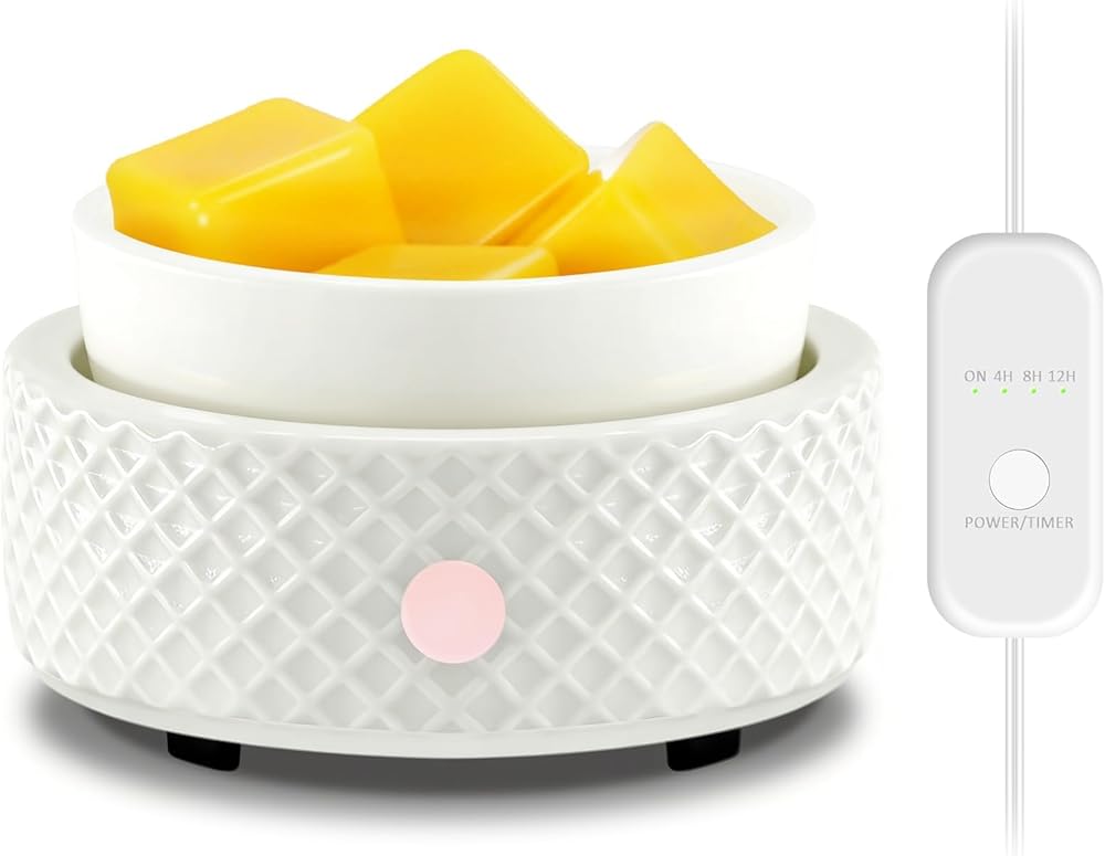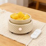 موقد شمع مدمج وثابت مزود بمؤقت، مصمم لسهولة الاستخدام: استمتع بتجربة الشكل الثابت الخفيف والمدمج للسيراميك عالي الجودة. من السهل حمل موقد الشمع الكهربائي بيد واحدة. يخلق نمط الشبكة البسيط، المقترن بلمسة نهائية ناعمة غير لامعة، متعة بصرية وملموسة ترفع من مستوى أي مساحة - من مكتب مكتب إلى طاولة بجانب السرير.