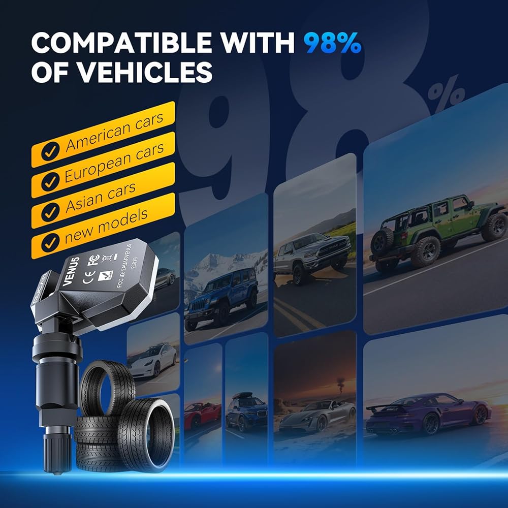 4 قطعة مستشعر MUCAR VENU5 TPMS: قابل للبرمجة بشكل غير محدود عبر MUCAR T261 وVENU I-Pro فقط. حافظ على رحلتك آمنة وفعالة مع نظام مراقبة ضغط الإطارات (TPMS) الذكي القابل للبرمجة.