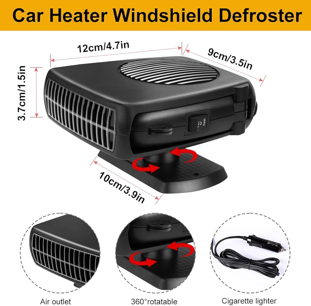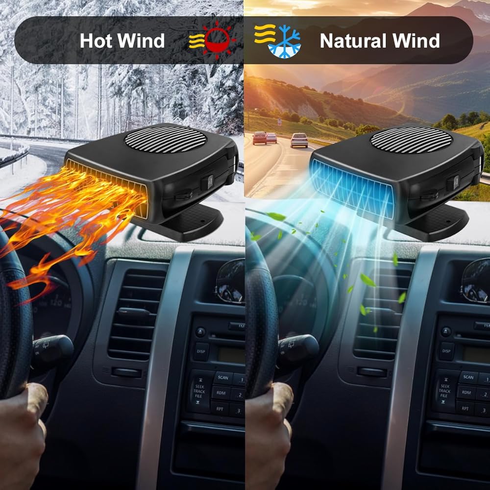• 【تدفئة وتبريد 2 في 1】يحتوي سخان السيارة هذا على وضعين للإعداد: التسخين والتبريد. تحتاج فقط إلى تغيير المفتاح، ثم سيخرج الهواء الساخن أو الرياح الباردة على الفور حسب احتياجاتك. سخان السيارة هذا ليس مثاليًا فقط لإزالة الضباب/إزالة الجليد عن الزجاج الأمامي. ولكن يمكن استخدامه أيضًا كمروحة تبريد لتمنحك الرياح في الصيف.