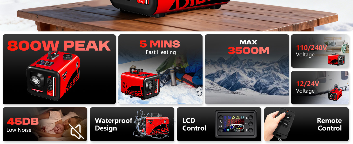 مع شاشة LCD سهلة الاستخدام - سخان الديزل الكل في واحد سهل الإعداد للغاية ليصبح جاهزًا للاستخدام. لأنه يأتي مع كتيب تعليمات مفصل للغاية. سيعرض مفتاح LCD حالة العمل. لقد تم بالفعل إقران وحدة التحكم عن بعد قبل التسليم، ويبلغ نطاق التحكم عن بعد 100 قدم.