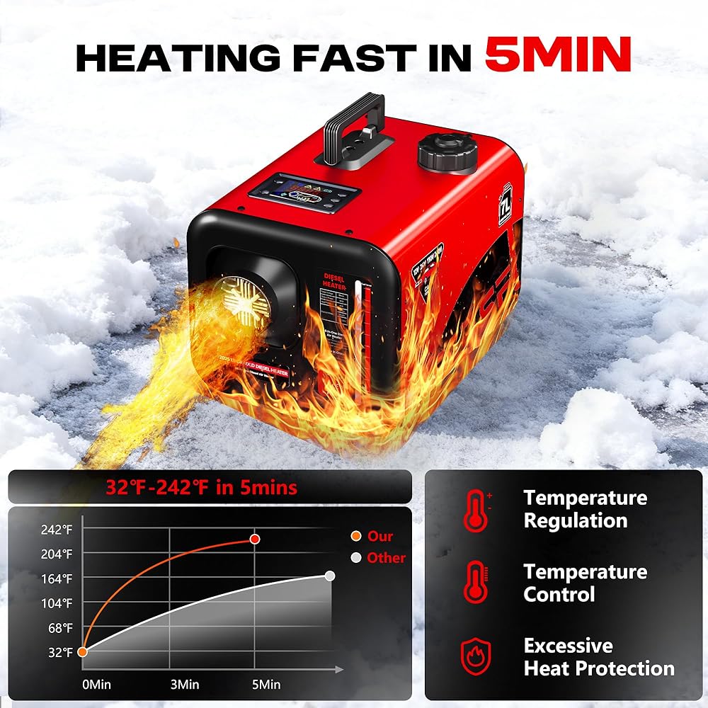 سخان ديزل حصري بقدرة 8 كيلو وات - سيوفر سخان الديزل POXURIO الكل في واحد بقدرة 8 كيلو وات تسخينًا مستمرًا أثناء التشغيل. قوة السخان: 8 كيلو واط؛ الفولطية المقدرة: 12 فولت. النطاق القابل للتطبيق: 215-269 قدمًا²/20-25 مترًا مربعًا، واستهلاك الوقود 0.16 ~ 0.62 لتر/ساعة. درجة حرارة العمل هي -45 ℉-109 ℉. في غضون 10 دقائق فقط، لا مزيد من التراكم على الطبقات والتجعيد في الزاوية، ابقِ دافئًا مع بوكسوريو في هذا الشتاء.