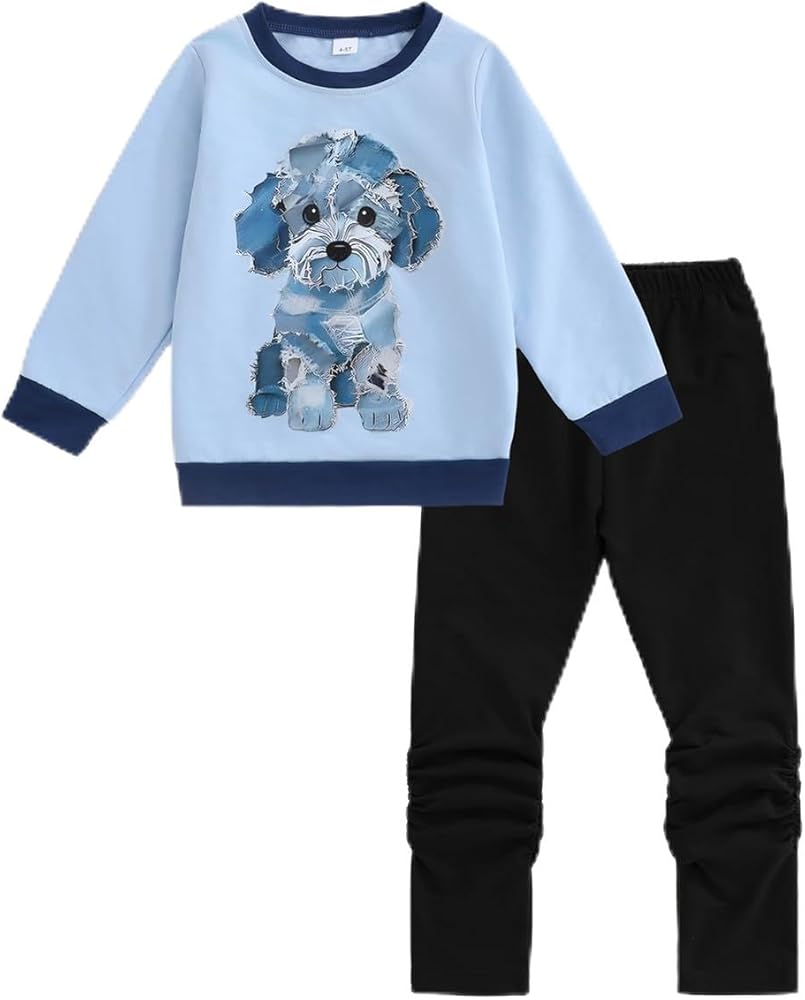 Toddler Girls' 2-Piece Outfit Set Long Sleeve Adorable Poodle Print Top & Pants Spring Autumn Casual Clothes Age 4-8