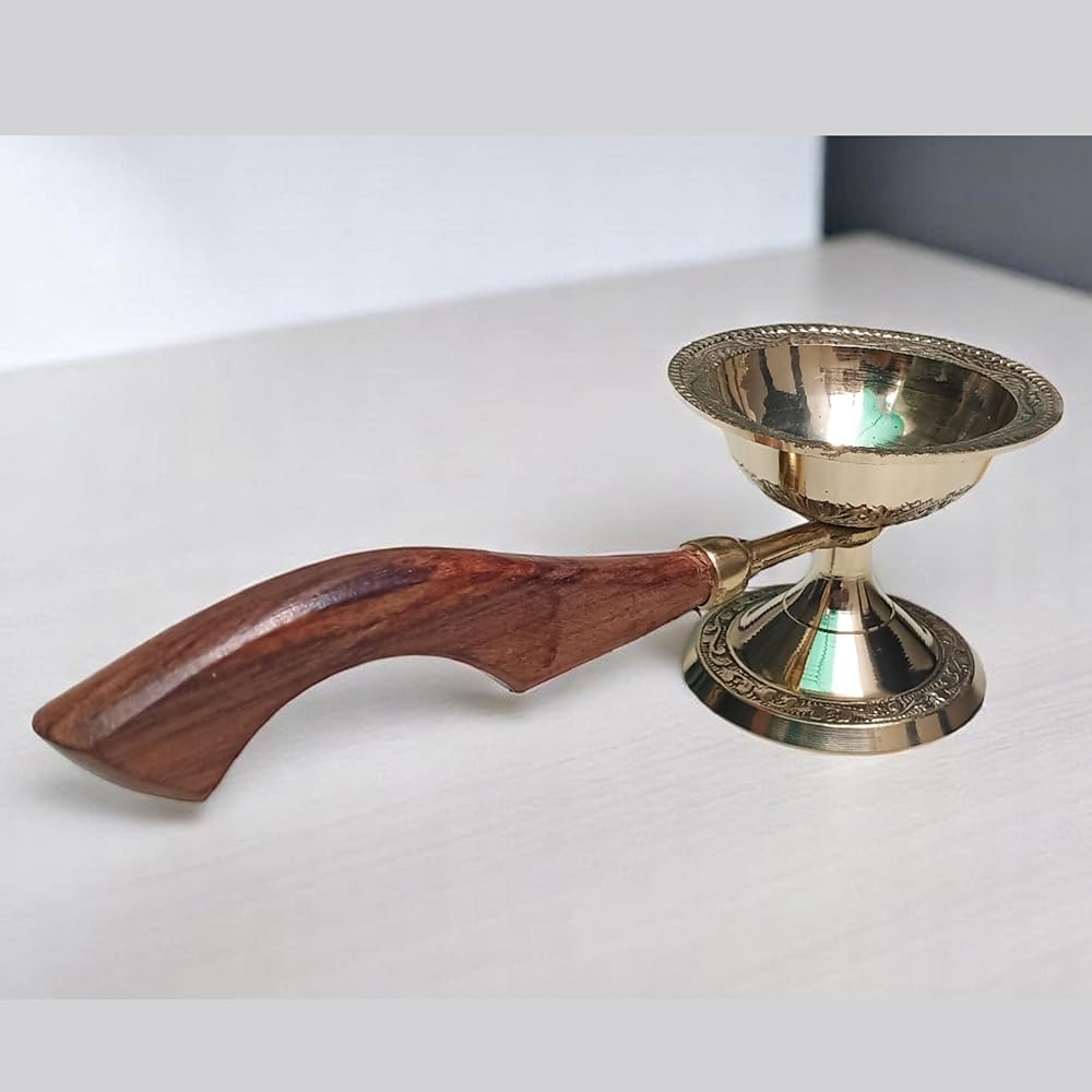 TRADITIONAL DESIGN: Authentic brass deepak oil lamp featuring a convenient carrying handle for traditional ceremonies and decorative purposes. Size : length 7.5"Inch , height 2.5"Inch , width 3"Inch | Weight : 140 Gram | Qty : 1 Pcs