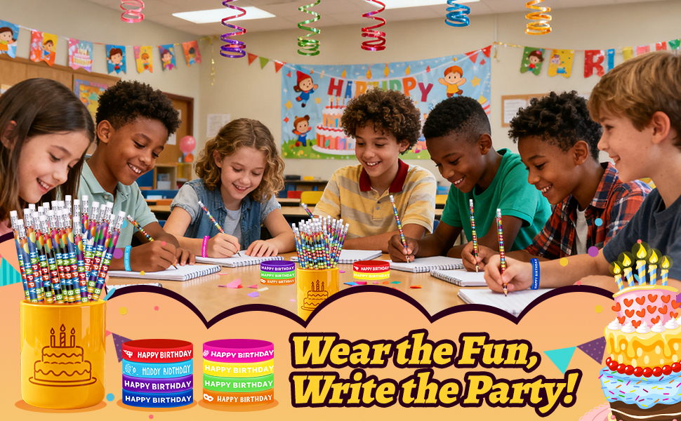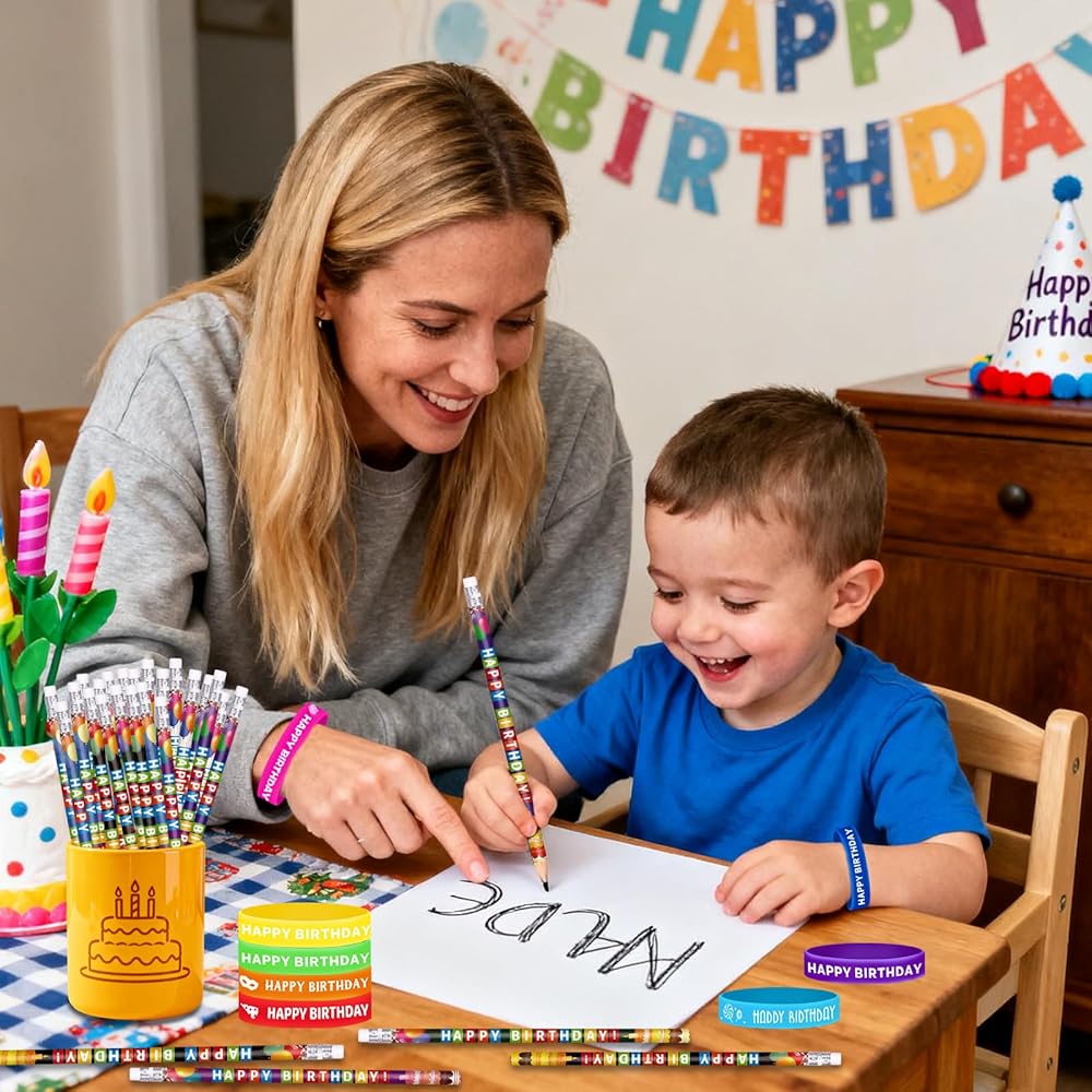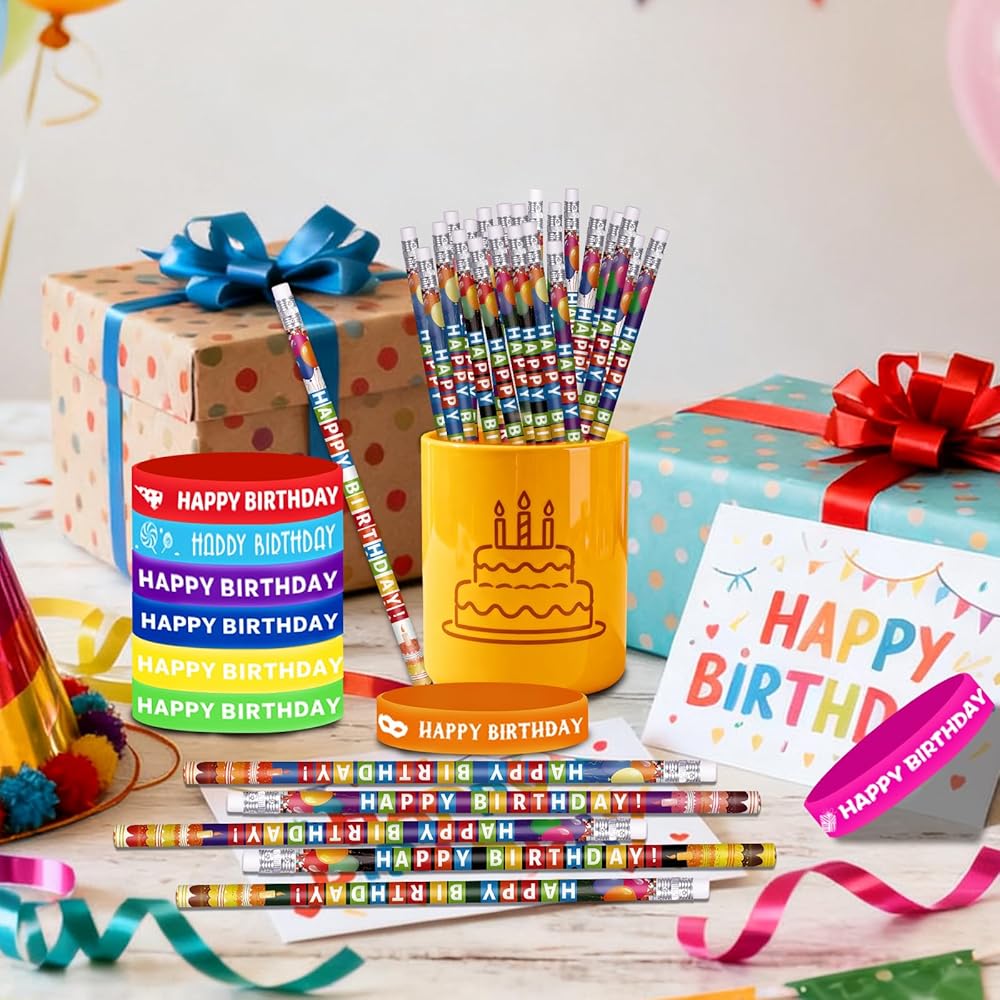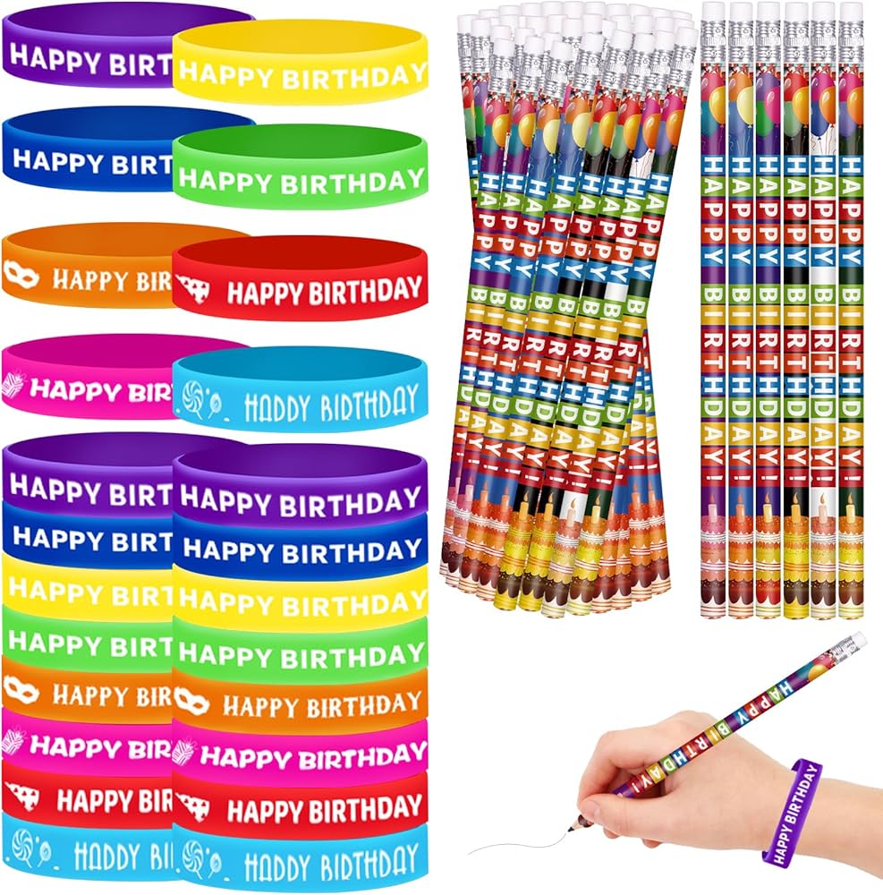 • تشتمل العبوة على: سوف تحصل على 48 قطعة من مجموعة أقلام عيد ميلاد سعيد بما في ذلك 24 قطعة من أقلام عيد ميلاد سعيد في 6 أنماط مختلفة، و24 قطعة من أساور السيليكون لعيد ميلاد سعيد في 6 أنماط، أكثر من كافية لحفلة عيد ميلادك، أو الاستخدام اليومي