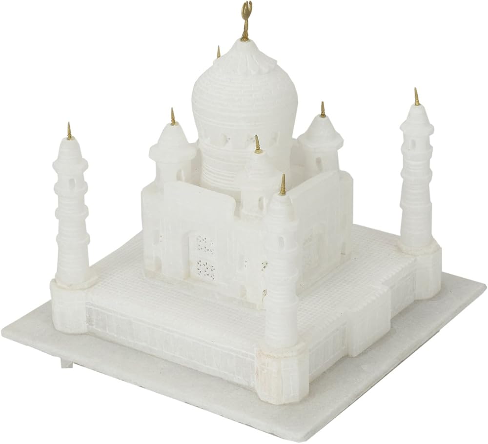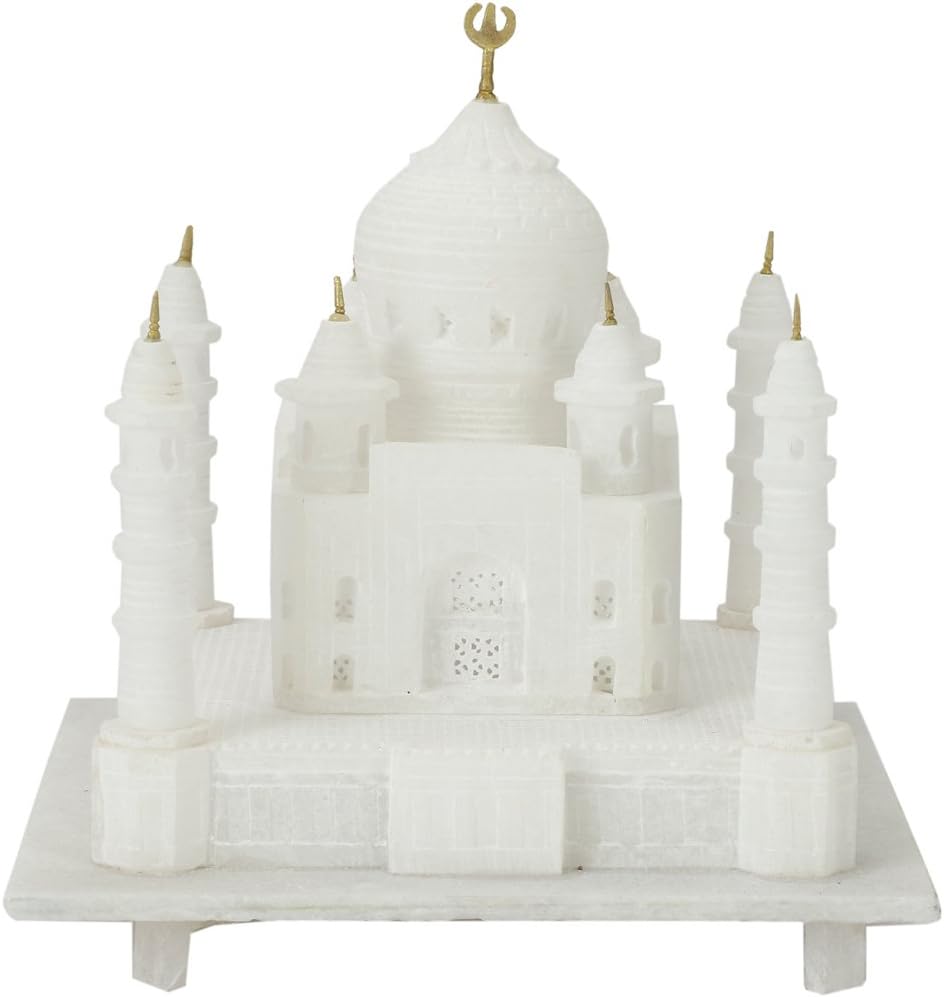 نسخة طبق الأصل من تاج محل مصنوعة يدويًا مقاس 6 بوصات - قطعة من الرخام الطبيعي من أجرا | نموذج تذكاري هندي | تاج محل من الرخام المصغر لديكور المنزل، أو سطح الطاولة، أو الديوالي أو هدية إرجاع الزفاف