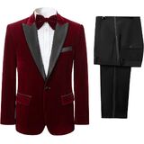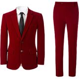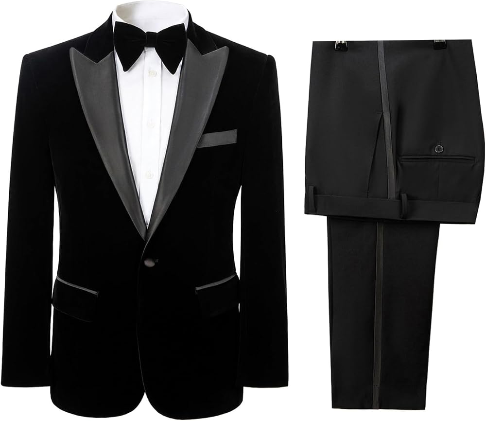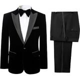 Suits Feature : Men's Velvet 2 Piece Suit Two Button slim fit notch lapel flap pocket Tuxedo Blazer.Flat front pants,zippered fly,button end.Fabric have Slight Elasticity,Comfortable,warm, breathable and soft feeling fabric. lining use high quality polyester and viscose,it is more healthy,soft,smooth,breathable,and easier to wash!Suitable for autumn,winter and spring.