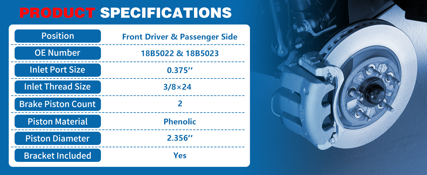 زوج أمامي لفرجار الفرامل القرصية متوافق مع 2005-2012 Ford F-250 Super Duty Ford F-350 Super Duty مع مجموعة فرامل فرامل العجلات الخلفية الفردية مع دعامة 18B5022 18B5023