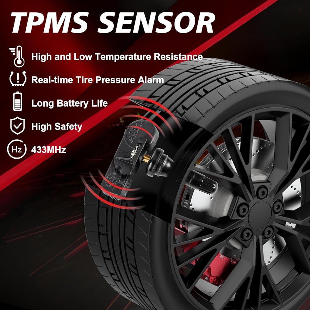مبرمج مسبقًا وجاهز في المصنع: يأتي TPMS الخاص بك مبرمجًا مسبقًا من المصنع، مما يلغي الحاجة إلى إعادة البرمجة المعقدة. ما عليك سوى تنشيطه باستخدام أداة الفحص بعد التثبيت. (مهم: لا تسمح بإعادة البرمجة في متجر - التنشيط فقط ضروري.) استمتع بالتنبيهات الصوتية/المرئية التلقائية لانحرافات الضغط/درجة الحرارة، مما يمنع وقوع الحوادث بشكل استباقي.