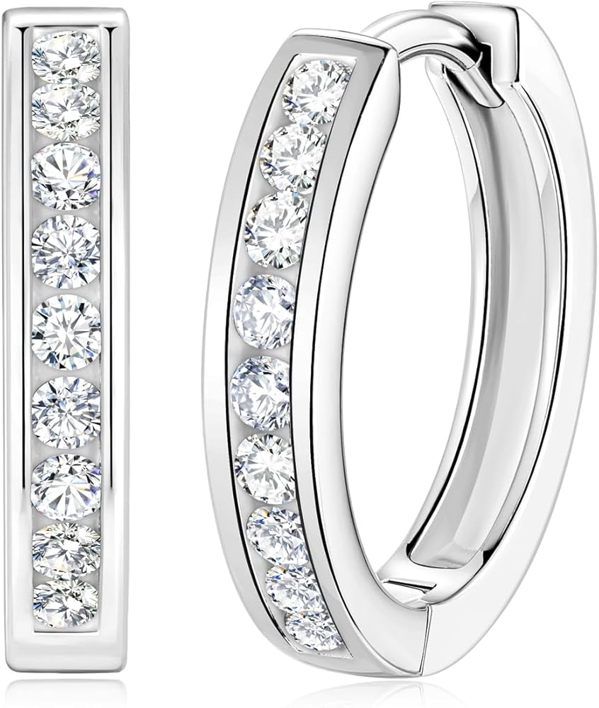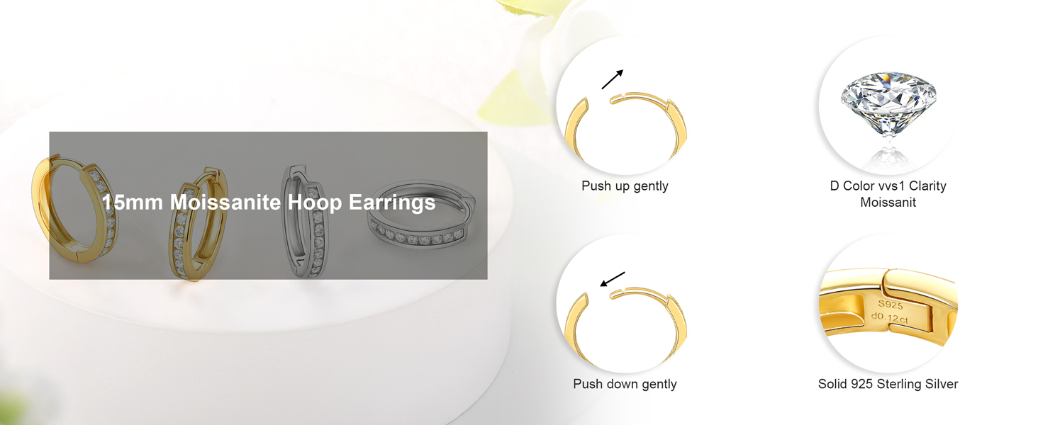 أقراط مويسانيتي/زمرد دائرية للسيدات من الفضة الإسترلينية عيار 925 مجموعة Huggie - لون D VVS1 حلقات مويسانيتي واضحة مع مطلية بالذهب لا تسبب الحساسية، مقاس 15 مم in Kuwait