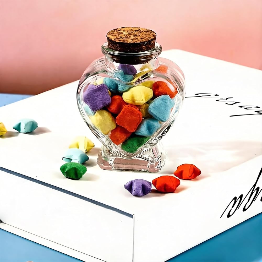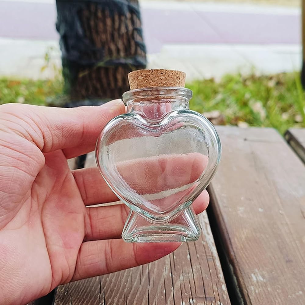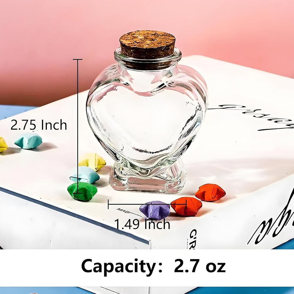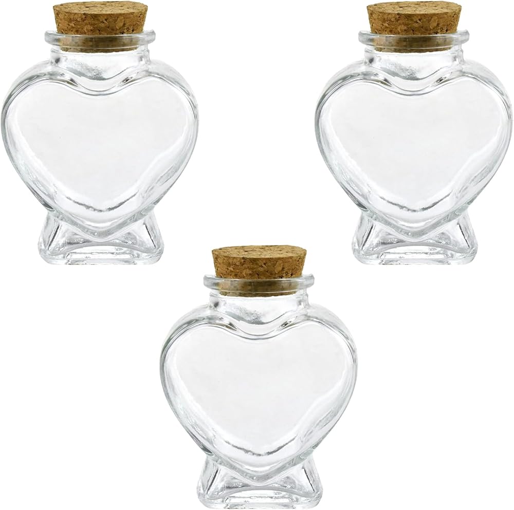 3 قطع من الجرار الزجاجية على شكل قلب مع أغطية الفلين، حاوية صغيرة لطيفة سعة 2.7 أونصة، زجاجات زجاجية صغيرة لمشاريع الحرف الفنية التي تصنعها بنفسك، لوازم حفلات الديكور في عيد الحب وعيد الأم