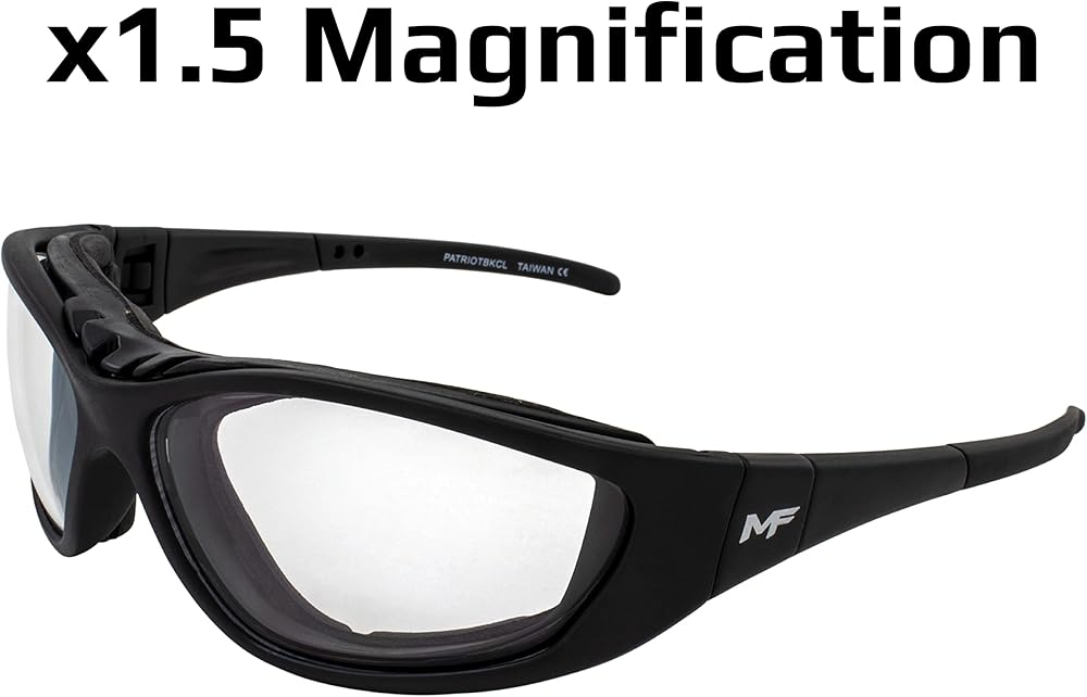 نظارات باتريوت مبطنة ثنائية البؤرة لركوب الدراجات النارية باللون الأسود مع عدسة شفافة + تكبير 1.5 Z78.1 + نظارات تتحول إلى نظارات واقية