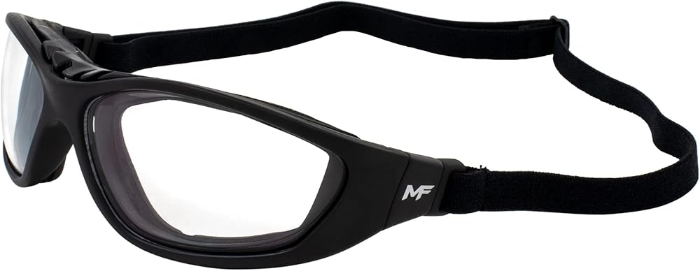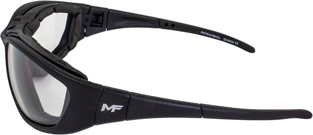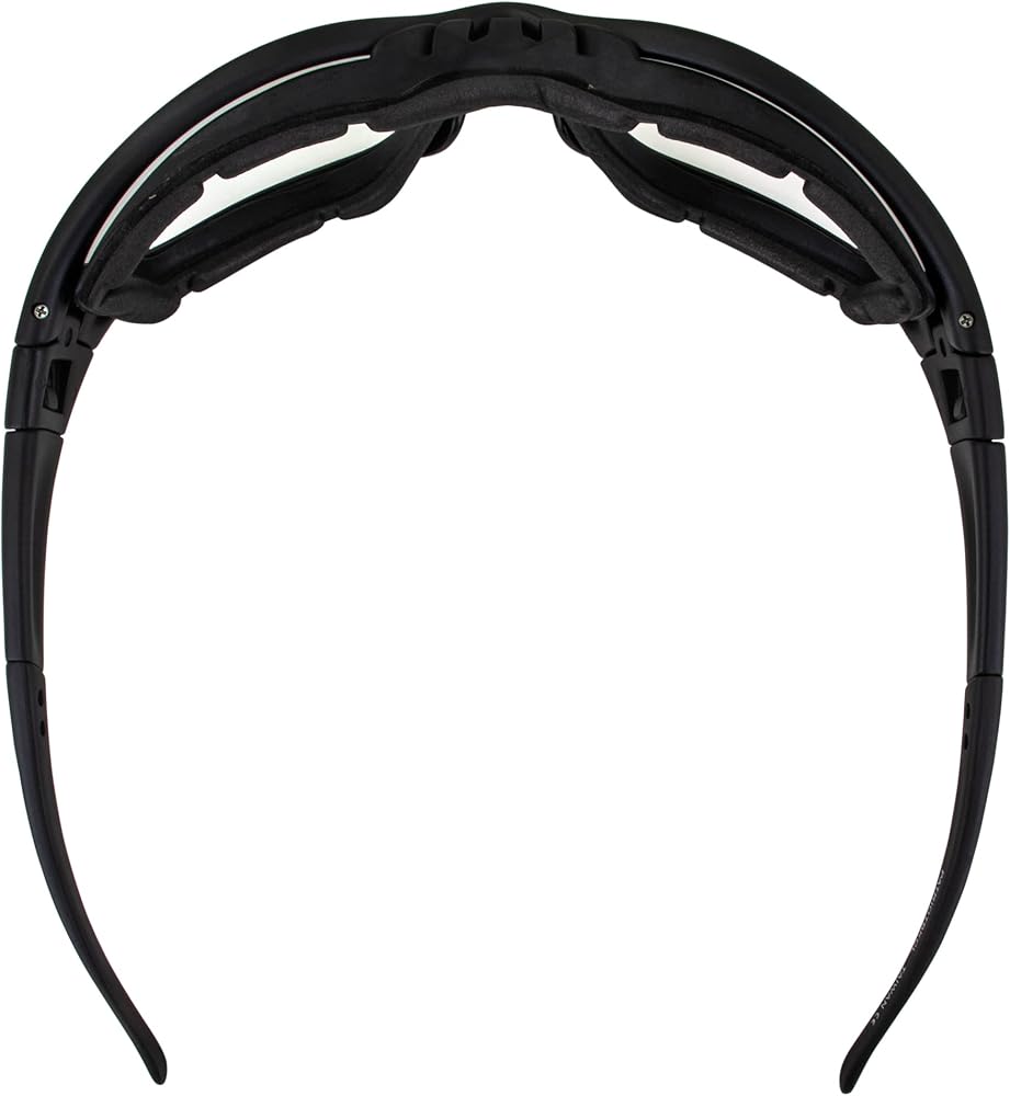 Like having three pairs of sunglasses in just one pair? Yep. Want regular glasses? Check. Want a pair of foam riding glasses? We got you. Do you need full-on goggles? Look no further. The Patriot safety and riding glasses combine the advantages of multiple pairs of eyewear into one. It can be worn as a foam-padded riding glass or when needed, the airy foam can be removed and the glasses can be worn as a regular sports wrap. The glasses' easily removable arms can be replaced with the optional elastic strap, transforming your Patriot foam-padded riding glasses into Patriot goggles. The high-quality lenses have antifog coatings and provide UV400 protection from the sun's potentially dangerous ultraviolet rays. When you wear the Patriot, the polycarbonate lenses will give you the peace of mind that comes with knowing that your eyes will be shielded from harm to the greatest extent possible. It has a +1.5 magnification on the bottom portion of the lens, which is used for close-up viewing, and a regular lens on the top portion, which is used for distant viewing. This allows you to comfortably switch between reading and looking at something in the distance without constantly taking them off and putting them back on, as other sunglasses require. These motorcycle padded glasses come with clear lenses, making them ideal for use indoors as well as during night rides or in heavily shaded areas. Safety. Style. Three functions in one great-looking pair. Who says you can't have it all? With our Patriot Bifocal Safety Glasses, you can have it all!