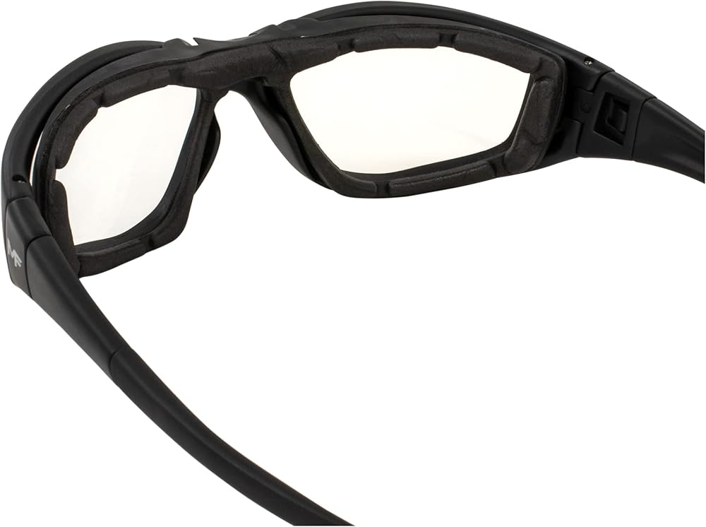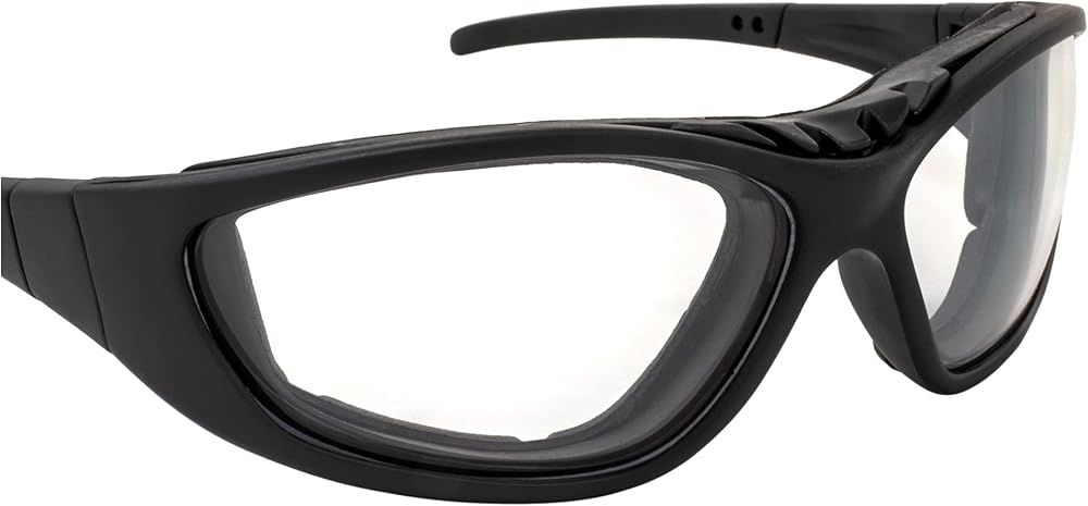 • Our high-quality motorcycle glasses feature shatterproof polycarbonate lenses that meet ANSI Z87.1 standards for use in industrial applications.