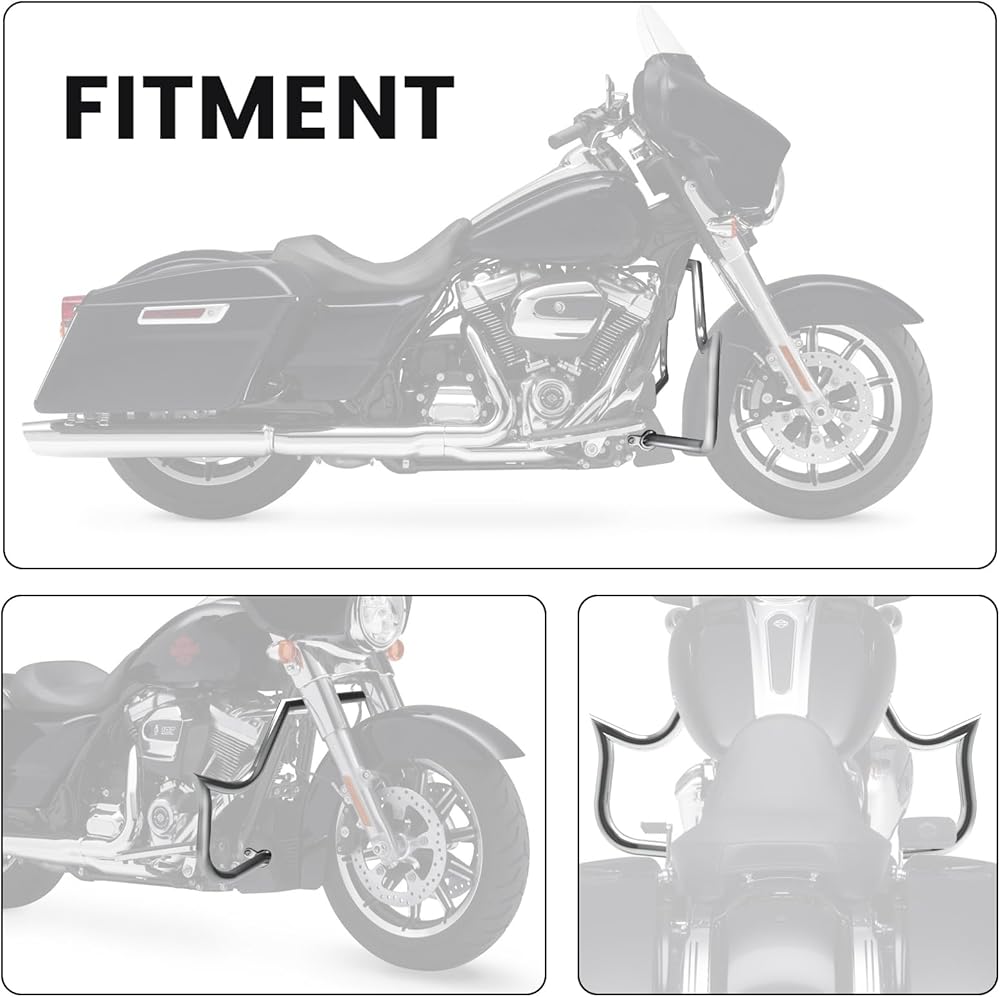 • الإعداد: شريط التصادم متوافق مع Road King FLHR Street Glide FLHX 2009-2026؛ Fit Special FLHXS FLHTK CVO Limited FLHTKSE Tri Glide Ultra FLHTCUTG 2014-2026 (لا يدعم واقي المحرك هذا تركيب أي مجموعة دعم هدية)