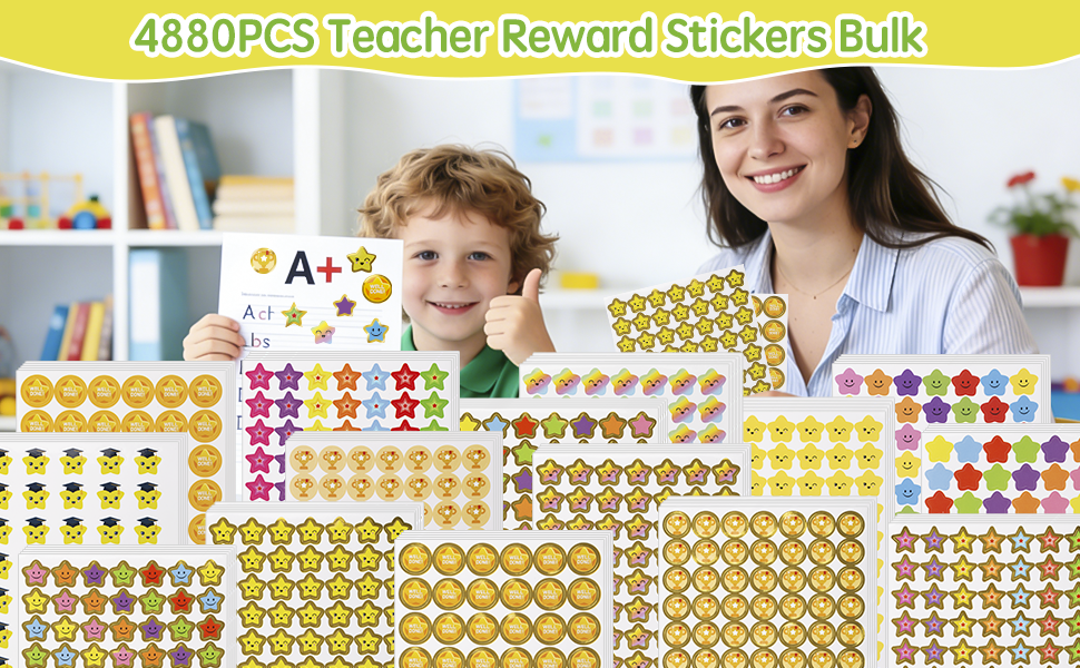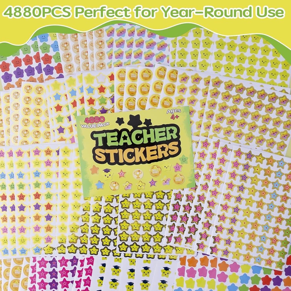 ملصقات مكافآت للفصل الدراسي للأطفال - 4880 ملصقًا للمعلم لمكافأة الفصل الدراسي، تحفيزية للطلاب (ملصقات المعلم)