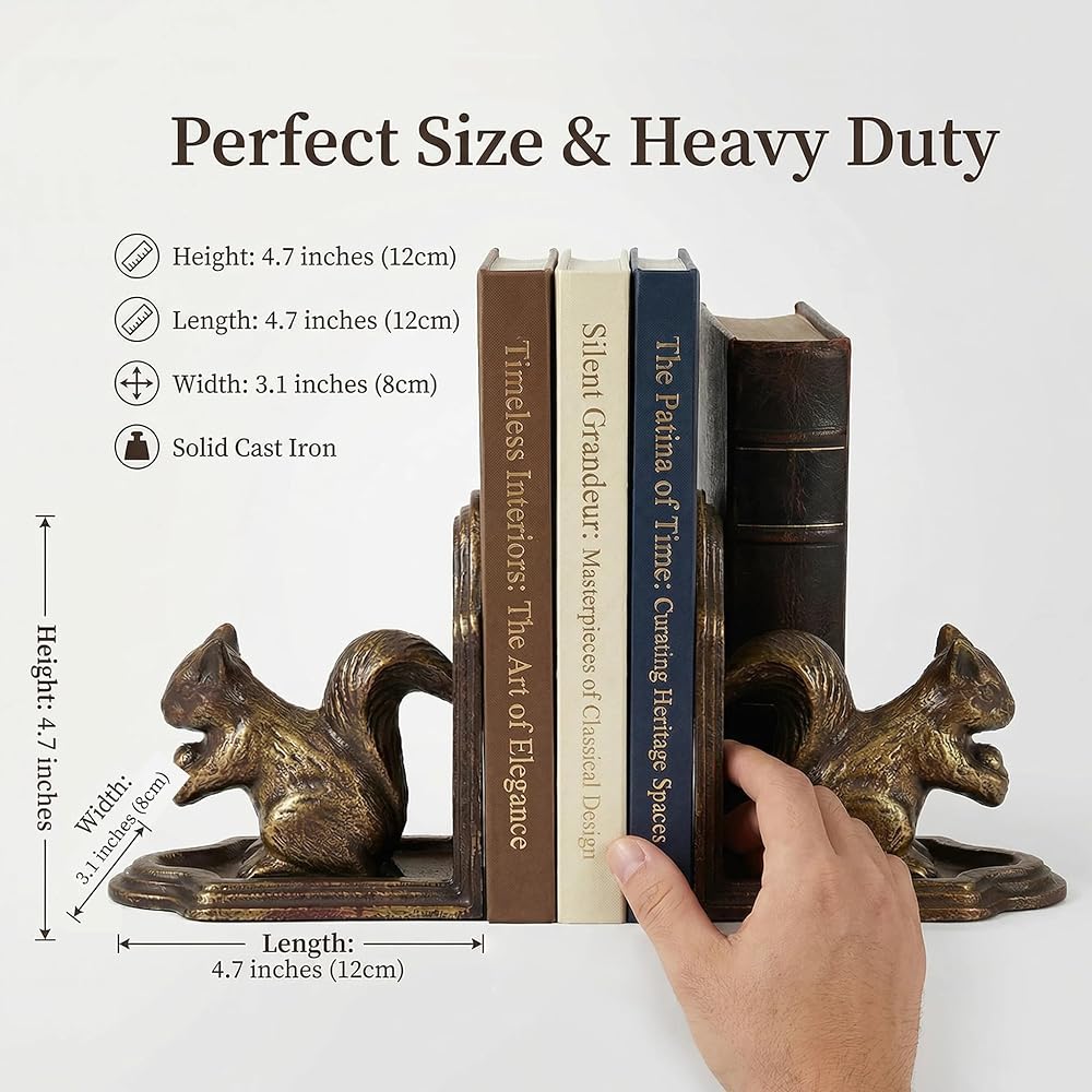 Ideal Gift for Nature & Book Lovers:these squirrel bookends make a thoughtful, unique gift for book lovers, nature enthusiasts, or anyone who appreciates vintage-inspired home decor. They're perfect for housewarmings, birthdays, Christmas, or any special occasion.