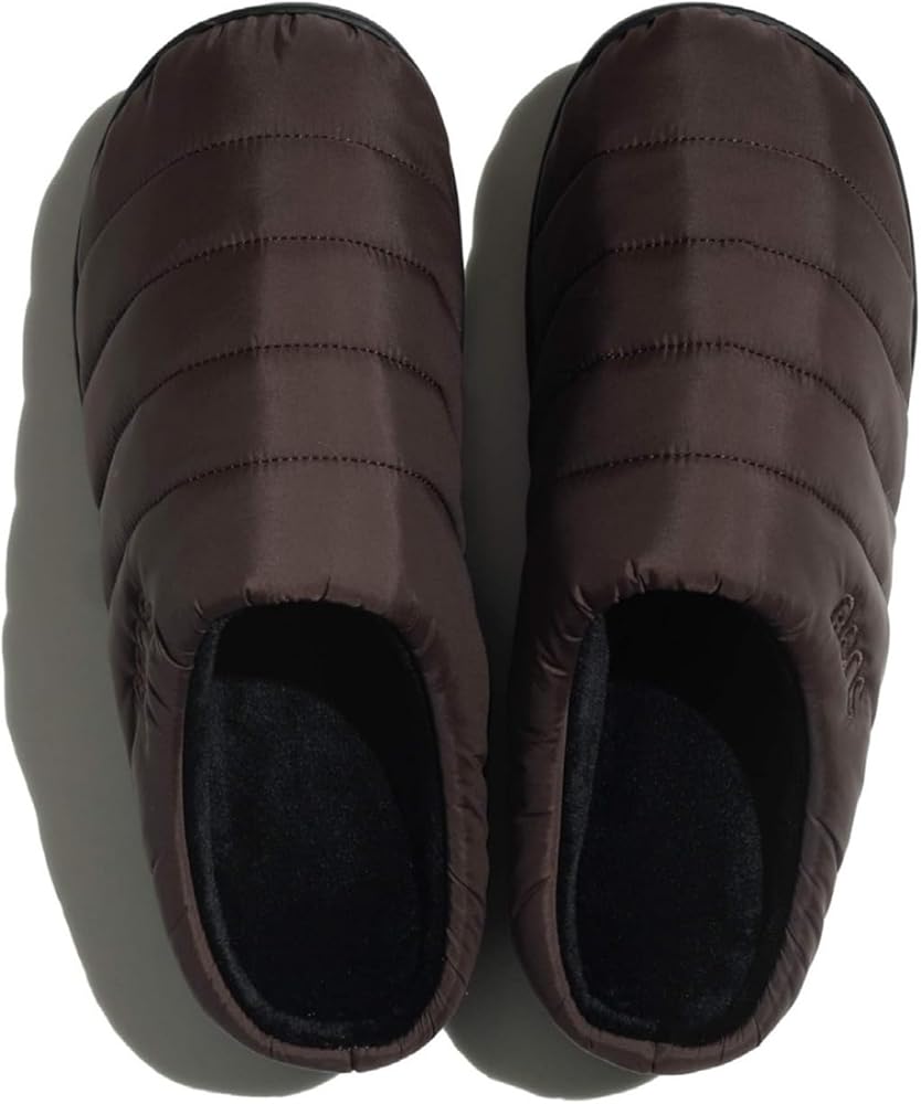 The SUBU Fall & Winter Slippers in Cocoa are designed to provide exceptional comfort and warmth during colder months. Crafted from nylon with a water-resistant Teflon coating, these slippers are filled with polyester down and feature a raised inner fabric for added softness. The synthetic rubber sole offers durability and grip, making them suitable for both indoor and outdoor use. Each pair comes with a drawstring storage bag for convenience. Please note, these slippers are not intended for operating vehicles.
