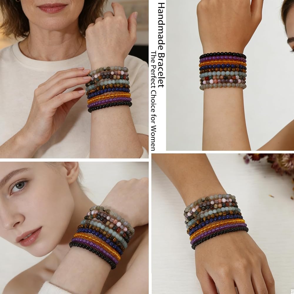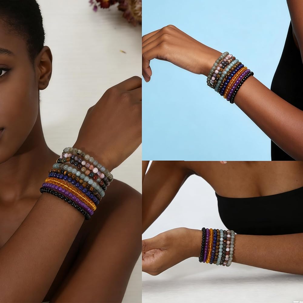 مريح ومتعدد الاستخدامات: يضمن السوار المرن القابل للتمدد والمصمم بعناية إمكانية ارتداء المعصم من جميع الأحجام بشكل مريح ومرن. استمتعي براحة ارتداء وإزالة هذه الأساور المصنوعة من الأحجار الكريمة، ودمجها بسهولة في حياتك اليومية