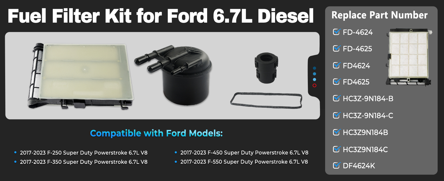 6.7 عنصر فلتر وقود الديزل Powerstroke، فاصل الوقود/الماء متوافق مع 2017-2023 Ford F250 F350 F450 F550 Super Duty 6.7L V8 استبدال FD-4624، FD-4625، HC3Z-9N184-B، HC3Z-9N184-C، DF4624K