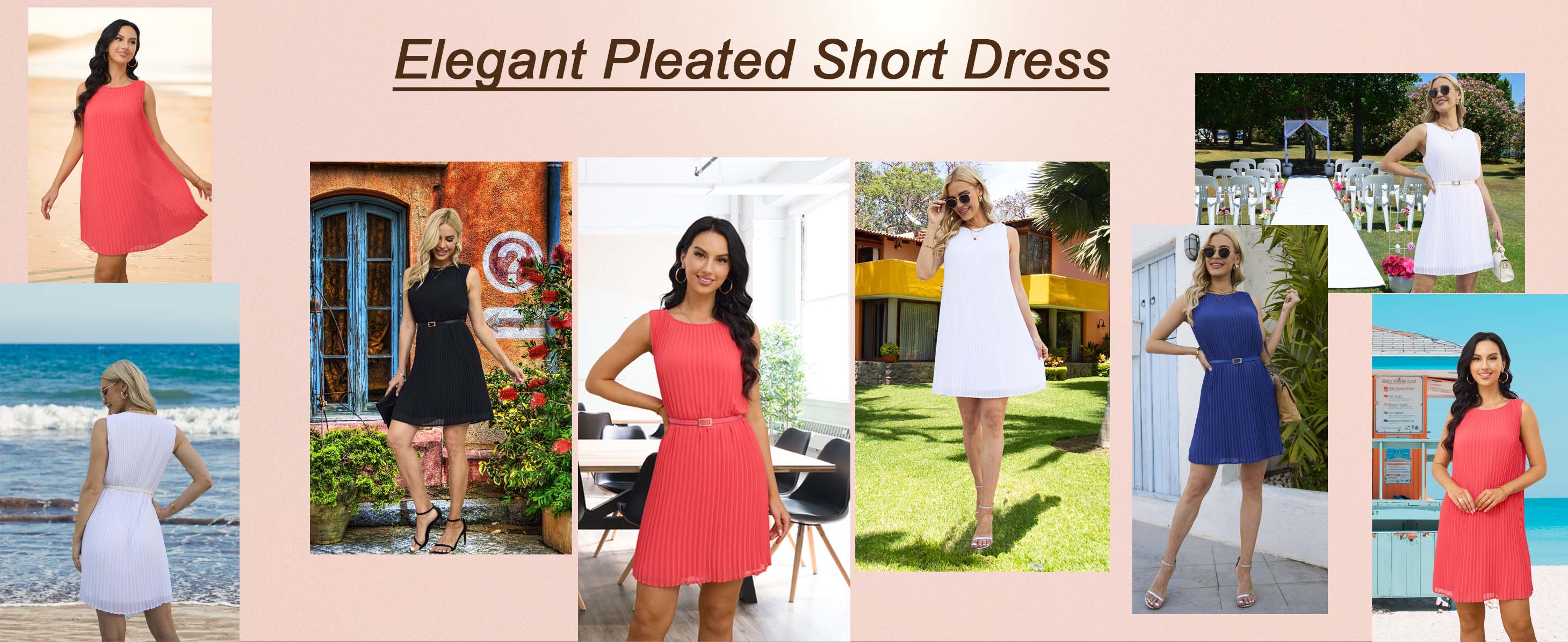 - ❤تصميم عصري: طيات نحيفة أنيقة، قميص بدون أكمام، طول قصير فوق الركبة، فستان فضفاض متأرجح للنساء، مقاس سهل ومرن
