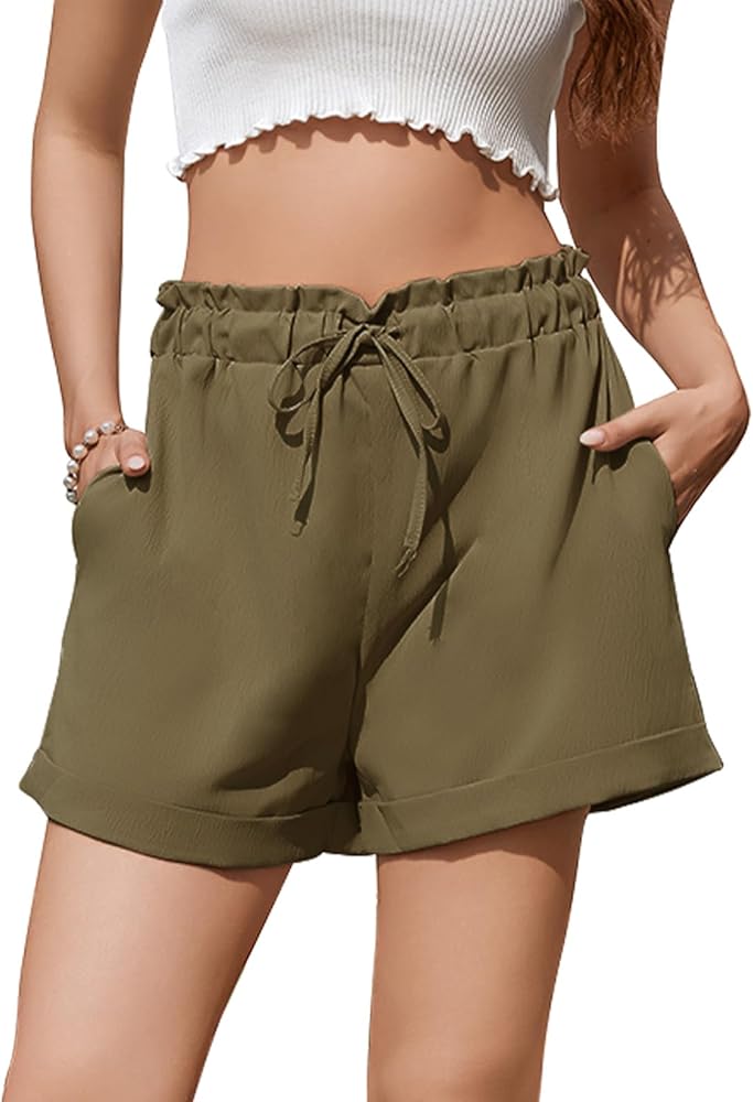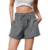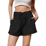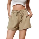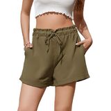 شورت نسائي عالي الخصر برباط، شورت صيفي فضفاض ومريح مع جيوب in Kuwait