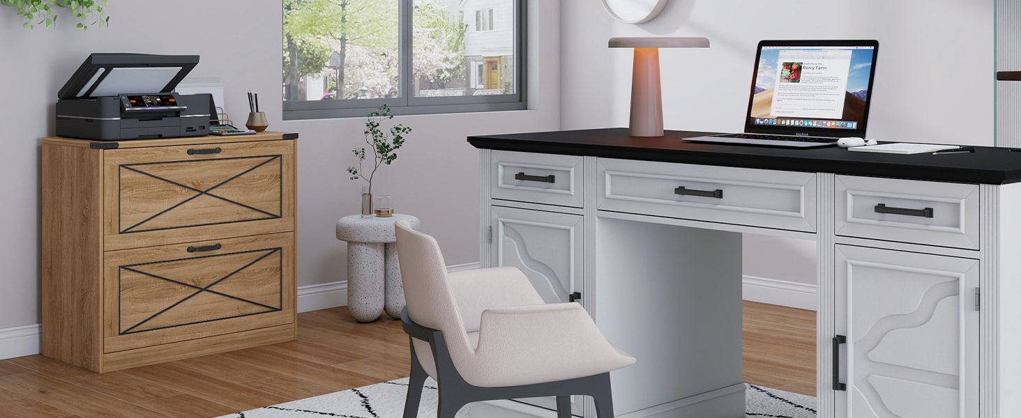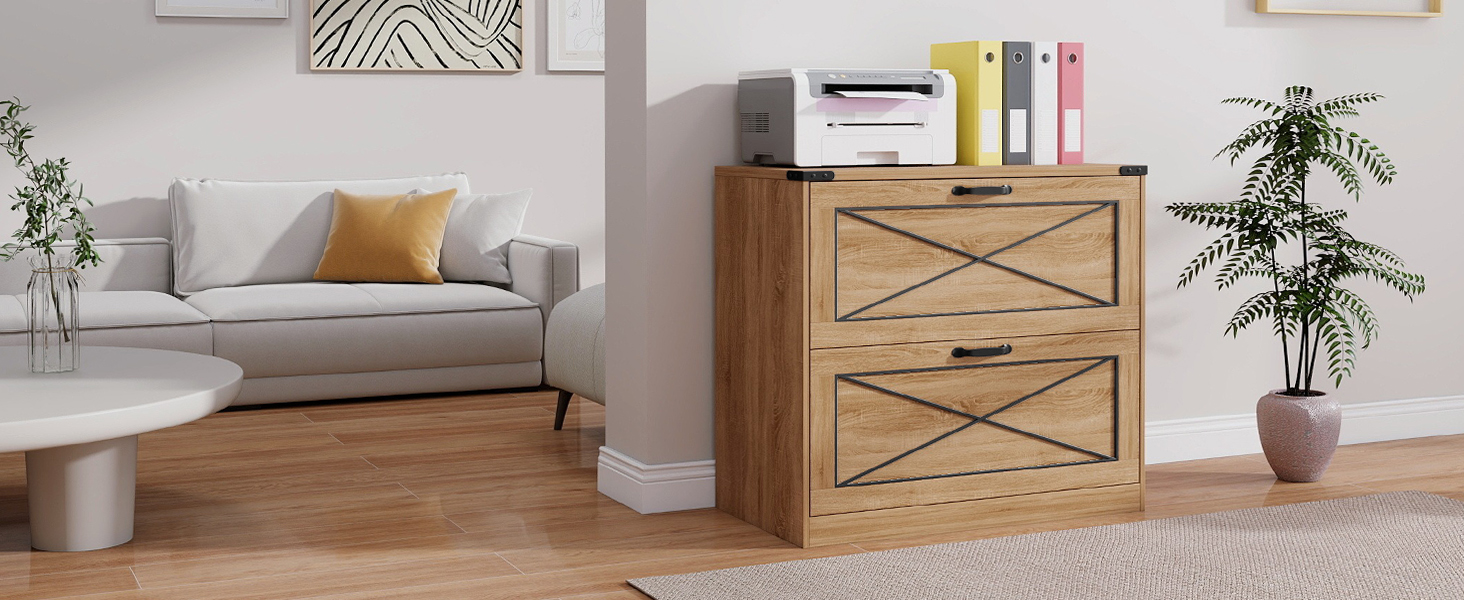【Spacious File Storage】: This charming laterall file cabinet features two spacious file drawers, beautifully designed to meet various document storage needs, effectively alleviating concerns about limited storage capacity. Each drawer is equipped with an adjustable hanging rail system, allowing flexible customization of spacing to suit your different storage requirements.