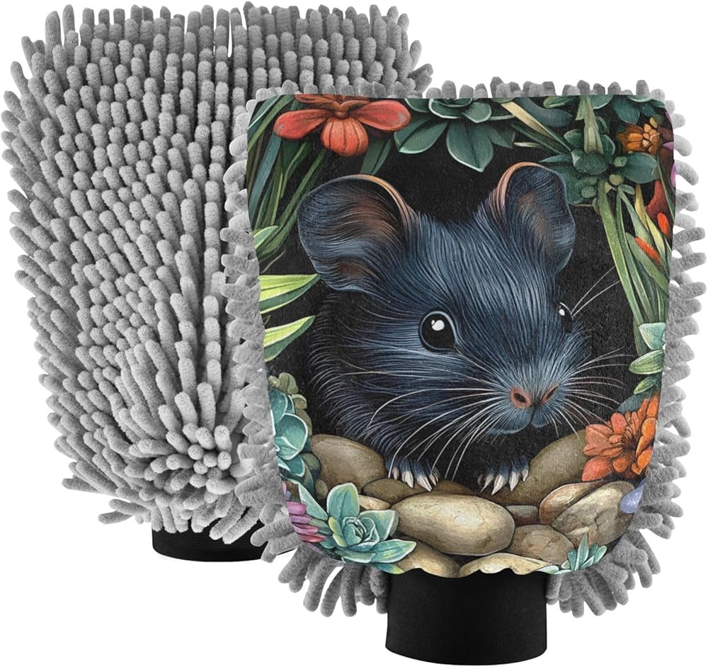 قفاز غسيل السيارات من AIXIWAWA، قفاز غسيل مقاوم للخدش، ماص للماء، 2 عبوة من ماوس متوسط ​​مطبوع عليه زهور