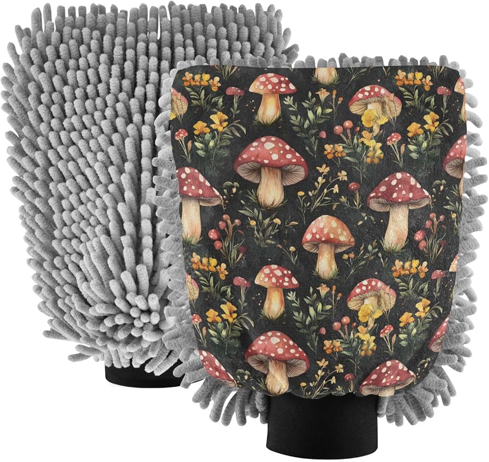 AIXIWAWA ألوان مائية فطر طباعة قفاز غسيل السيارات قفاز غسيل مقاوم للخدش وماص للماء 2 حزمة كبيرة in Kuwait